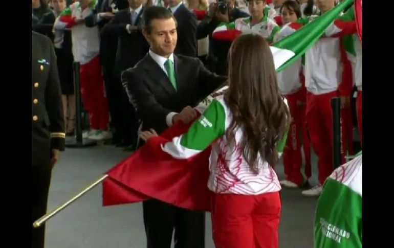 Deportes | El lábaro patrio fue entregado a la raquetbolista Paola Longoria Peña Nieto abandera delegación para Veracruz 2014 El lábaro patrio fue entregado a la raquetbolista Paola Longoria Por: NTX 31 de octubre de 2014 - 12:11 hs El Presidente de México deseó lo mejor a los atletas nacionales. TWITTER / @Conade CIUDAD DE MÉXICO (31/OCT/2014).- El presidente Enrique Peña Nieto abanderó la tarde de este viernes a la delegación mexicana que participará en los Juegos Centroamericanos y del Caribe a celebrarse del 14 al 30 de noviembre en el estado de Veracruz. Durante su discurso en la Residencia Oficial de Los Pinos, Peña Nieto pidió a las y los atletas, salir a ganar y poner en alto el nombre de México, queremos "que al concluir la competencia ondeé la Bandera tricolor y se escuche nuestro Himno Nacional". El mandatario federal dijo a los deportistas que participará en los 22 Juegos Centroamericanos, que representan una generación de mexicanos comprometida con un mejor futuro. Afirmó que tienen los conocimientos, las capacidades y la determinación para contribuir de manera activa a la transformación y al progreso de México. Peña Nieto les manifestó que como deportistas son ejemplo de la grandeza y el potencial que hay en cada mexicano. "Deben llegar a Veracruz con mentalidad ganadora, porque todos ustedes, y de eso estoy convencido, están listos para triunfar, en la cancha, en la alberca, en la pista y en cualquier prueba, los mexicanos queremos", expresó. Al abanderar a la Delegación Mexicana que participará en los 22 Juegos Centroamericanos y del Caribe, Veracruz 2014, el jefe del Ejecutivo, comentó que cada vez es más frecuente que las delegaciones mexicanas destaquen por su entrega, por su pasión y sus resultados. Los deportistas mexicanos compiten seguros de sí mismos, sin complejos ni temores, porque saben que el éxito está a su alcance, sostuvo al resaltar que esta delegación refleja el talento y la diversidad mexicanos, con jóvenes promesa, así como hombres y mujeres de amplia experiencia en sus disciplinas. Acompañado por el gobernador de Veracruz, Javier Duarte, afirmó que el verdadero éxito no es cuestión de suerte, sino de dedicación, constancia, sacrificio y disciplina. "Ustedes, jóvenes deportistas, se han ganado ese honor, al integrar la delegación mexicana que participará en los juegos Centroamericanos y del Caribe Veracruz 2014", les dijo. Convocó a los deportistas mexicanos a portar con orgullo y con dignidad los colores patrios. "Tengan siempre presente que cada victoria que obtengan será un triunfo para ustedes , un gran orgullo para sus familias y para todo México". Temas Enrique Peña Nieto Conade COM Deporte Amateur JCC Veracruz 2014 Recibe las últimas noticias en tu e-mail Todo lo que necesitas saber para comenzar tu día Registrarse implica aceptar los Términos y Condiciones