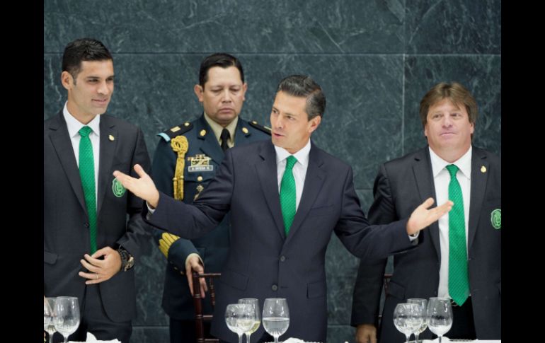 Deportes | El Mandatario recibe en Los Pinos a la Selección mexicana Peña Nieto celebra continuidad de 'El Piojo' El Mandatario recibe en Los Pinos a la Selección mexicana en donde agradeció el buen desempeño de los jugadores Por: SUN 16 de julio de 2014 - 07:41 hs CIUDAD DE MÉXICO (16/JUL/2014).- El presidente Enrique Peña Nieto aplaudió a la Federación Mexicana de Futbol por haber ratificado (aún no de manera oficial) a Miguel Herrera como director técnico de la Selección Nacional. “Confío en que esta continuidad se traduzca en buenos resultados en los próximos torneos, porque desde hoy vamos a comenzar a escribir la historia de éxito de nuestra Selección Nacional para Rusia 2018”, señaló el mandatario. Al recibir en Los Pinos al equipo que participó en el Mundial de Brasil, sostuvo que gracias al buen desempeño que tuvo la Selección Nacional, el mundo pudo reconocer en su futbol la transformación positiva que está viviendo México. “En Brasil 2014 ustedes fueron reflejo de la grandeza y el talento de los mexicanos. Deben sentirse orgullosos de su desempeño y seguir apuntando a lo más alto, ya que portaron los colores de México con patriotismo, honor y gallardía”, dijo. El presidente Peña Nieto lamentó que México no trajo la Copa del Mundo, pero “es momento de decirles que sí lograron ustedes algo muy importante, más importante aún que la propia Copa del Mundo: sembraron en la emoción de todos los mexicanos el gran orgullo que representa ser mexicano”. Al evento asistieron directivos, cuerpo técnico del Tri y 12 jugadores, entre ellos Rafael Márquez y Guillermo Ochoa, además del árbitro Marco Rodríguez, quien dirigió la semifinal en la que Alemania venció 7-1 a Brasil. Y al parecer el Presidente también se contagió de la Piojomanía: “Los inolvidables festejos del director técnico Miguel Piojo Herrera demostraban la entrega y la pasión que nos distinguen a los mexicanos”. Subrayó que frente a Camerún, Brasil, Croacia y Holanda, el equipo dejó claro que México es ya un rival de clase mundial y a la altura de los mejores; ahora se ubica entre las diez mejores selecciones del orbe. El capitán Rafael Márquez, contrario a su férreo desempeño en la cancha, nervioso y titubeante, destacó la unidad del equipo. “Sin lugar a dudas cumplimos”, dijo. Matizó: “No se puede ocultar que fallamos en el objetivo que nos planteamos [cuartos de final]; sin embargo, en donde no les fallamos a nuestra afición y al país, fue en que todo momento nos entregamos, nos brindamos al máximo y en cada una de nuestras participaciones peleamos y luchamos de principio a fin en la búsqueda de la victoria”. Miguel Herrera soltó: “Y como dijo el Presidente: no fue penal”. El Piojo se dijo orgulloso del desempeño de los jugadores. Aceptó que no se cumplió con el objetivo trazado, pero se dijo tranquilo. “En cada partido que se disputó en tierras cariocas, la Selección Mexicana dejó huella, y su afición también. La escuadra tricolor, a la que tuve la enorme dicha de dirigir, dejó el alma, la piel, en cada balón que disputó dentro del campo, tal cual como nos comprometimos”, finalizó el director técnico nacional. Temas Futbol Mexicano Selección mexicana Enrique Peña Nieto Miguel El Piojo Herrera Lee También Argelia clasifica para el Mundial 2026 Chivas y América calientan en redes el Clásico Nacional de la Fecha FIFA Barcelona interesado en Gilberto Mora, esto es lo que se sabe Inflación en México se acelera en septiembre; liga dos meses al alza Recibe las últimas noticias en tu e-mail Todo lo que necesitas saber para comenzar tu día Registrarse implica aceptar los Términos y Condiciones