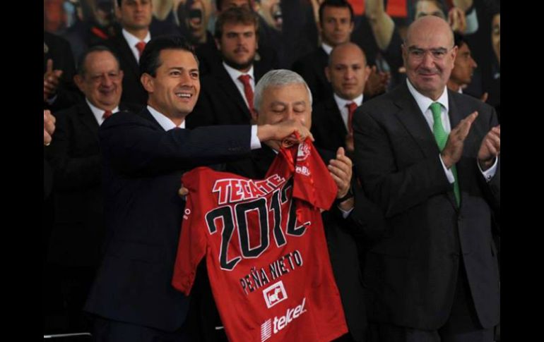 Deportes | El Presidente de México pide un 'voto de confianza' para la selección mexicana Peña Nieto pide confiar en el Tri El Presidente de México pide un 'voto de confianza' para la selección mexicana Por: NTX 26 de julio de 2013 - 12:04 hs El Primer Mandatario convive con los futbolistas y habla de este deporte. ESPECIAL / CIUDAD DE MÉXICO (26/JUL/2013).- El Presidente de México, Enrique Peña Nieto, recibió al equipo Xolos de Tijuana, campeón del Torneo Apertura 2012 de la Liga MX, en evento realizado en la Residencia Oficial de Los Pinos. El primer Mandatario del país destacó la entrega y el esfuerzo que puso cada uno de los jugadores, cuerpo técnico y directiva, al cosechar este campeonato, muestra del buen trabajo que consideró han hecho en tan poco tiempo. Asimismo les agradeció la oportunidad de poder convivir con ellos, a quienes consideró un ejemplo a seguir por lo que han logrado hasta el momento y a quienes espera recibir a la brevedad para celebrar con ellos otro éxito en el balompié nacional. A su vez, el Presidente del conjunto tijuanense, Jorge Hank Inzunza, agradeció al mandatario por la oportunidad de recibirlos y presentare el trofeo obtenido por Tijuana. "En nombre de Tijuana agradezco al Presidente Enrique Peña Nieto, es un orgullo estar aquí, es un día muy importante y a nombre de la directiva, cuerpo técnico, jugadores y afición, agradezco y me comprometo a seguir trabajando con el mismo esfuerzo para poder regresar aquí lo antes posible con el señor Presidente". También el defensa y capitán del cuadro fronterizo, el argentino Javier Gandolfi, tomó la palabra y mencionó que "es un honor para todos que nos reciban, estamos muy contentos por lo que hemos conseguido en tan poco tiempo, con mucho esfuerzo". "Con trabajo de día a día para dar el máximo, por lo que hoy estamos aquí disfrutando este momento único al lado de usted señor Presidente. Este título lo logramos con una sola palabra que es el equipo, lo mismo que hace usted en este momento con el país". Jesús Mena, titular de la Comisión Nacional de Cultura Física y Deporte (Conade), destacó el trabajo que ha hecho una directiva tan joven como la de Xolos, muestra que de que la juventud no está peleada con el éxito. Javier Gandolfi, a nombre de todo el equipo y la institución del estado de Baja California, entregó una playera al Presidente Peña Nieto, quien agradeció el gesto y reiteró su deseo de volverlos a ver en poco tiempo. En el evento también estuvieron presentes Jorge Hank Rhon, empresario y dueño del equipo; Emilio Chuayffet, secretario de Educación Pública (SEP); Juan José Guerra Abud, secretario Medio Ambiente, y el presidente de la Liga MX, Decio de María Serrano. El argentino Antonio Mohamed, técnico que llevó a Xolos al título, no estuvo presente, y tampoco su compatriota Jorge Almirón, quien ahora dirige al equipo; de la plantilla actual solo estuvieron los jugadores que fueron parte de la coronación en aquel 4-1 global sobre Toluca. Temas Futbol Mexicano Selección mexicana Enrique Peña Nieto Xolos de Tijuana Liga MX Lee También La franja enfrenta a la jauría El Oviedo recibe a los periquitos Futbol hoy 17 de octubre de 2025: ¿Dónde ver los partidos en vivo? ¿Erick Gutiérrez y Roberto Alvarado regresan a la actividad ante Mazatlán? Recibe las últimas noticias en tu e-mail Todo lo que necesitas saber para comenzar tu día Registrarse implica aceptar los Términos y Condiciones