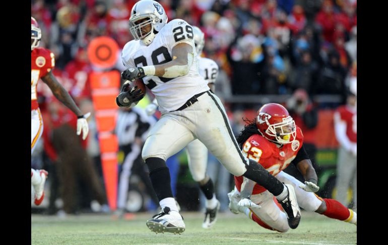 Deportes | Oakland derrota a los Jefes de Kansas City 31-10 Pese a marca divisional, Raiders no pasa a playoffs Oakland derrota a los Jefes de Kansas City 31-10 Por: AP 2 de enero de 2011 - 16:03 hs Michael Bush corrió para 137 yardas y un touchdown en la victoria de Raiders sobre Jefes. EFE / KANSAS CITY, ESTADOS UNIDOS (02/ENE/2011).- Michael Bush corrió para 137 yardas y un touchdown, y los Raiders de Oakland vencieron el domingo 31-10 a los Jefes de Kansas City para ganar una singular distinción en la NFL. Los Raiders (8-8) terminaron 6-0 en la División Oeste de la Conferencia Americana, el primer equipo desde la fusión de 1970 que finaliza invicto en la división pero no llega a playoffs. Por su parte, los Jefes (10-6) terminaron 2-4 en la división, pero recibirán en casa un partido de postemporada la próxima semana como campeones de la Oeste de la Americana. Dos de los mejores jugadores de Oakland, el corredor Darren McFadden y el tackle defensivo Richard Seymour, estuvieron inactivos debido a lesiones. Pero los Raiders dominaron casi en todos los rubros y propinaron a los Jefes su primera derrota en casa. Temas NFL Futbol Americano Jefes de Kansas City Raiders de Oakland Recibe las últimas noticias en tu e-mail Todo lo que necesitas saber para comenzar tu día Registrarse implica aceptar los Términos y Condiciones