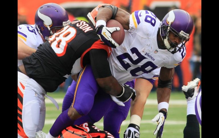 Deportes | El estelar corredor no logró superar la lesión sufrida en su pie desde la semana 13 Peterson, descartado para el último juego de los Vikingos El estelar corredor no logró superar la lesión sufrida en su pie desde el 8 de diciembre, en que se realizó la semana 13 de la NFL Por: AP 28 de diciembre de 2013 - 19:37 hs Peterson jugó la semana pasada ante Cincinnati, pero no rindió lo esperado. ARCHIVO / MINEAPOLIS, MINNESOTA (28/DIC/2013).- Los Vikingos de Minnesota descartaron la participación del corredor Adrian Peterson para su último encuentro de la temporada. El equipo anunció el sábado que cambió el reporte inicial de lesionados, en el que Peterson aparecía como en duda para jugar el domingo, cuando los Vikingos disputarán su último encuentro de la campaña, recibiendo a los Leones en el Metrodome. Peterson sufrió un esguince del pie derecho el 8 de diciembre en Baltimore y no jugó la semana siguiente contra Filadelfia. Tuvo acción el domingo pasado en Cincinnati, pero fue poco eficaz. El corredor admitió más tarde que la lesión afectó su rendimiento. Además este año ha tenido dolor de ingle. Peterson termina la temporada con mil 266 yardas ganadas por carrera, el segundo total más bajo en sus siete años en la NFL. Temas NFL Futbol Americano Vikingos de Minnesota Lee También "Chucky" Lozano reconoce que jugaría en Chivas o en América Dónde ver EN VIVO el México vs Argentina por el Mundial Sub-20 ¿Dónde ver EN VIVO el partido amistoso México vs Colombia? México vs. Argentina: Hora de alzar el pecho Recibe las últimas noticias en tu e-mail Todo lo que necesitas saber para comenzar tu día Registrarse implica aceptar los Términos y Condiciones