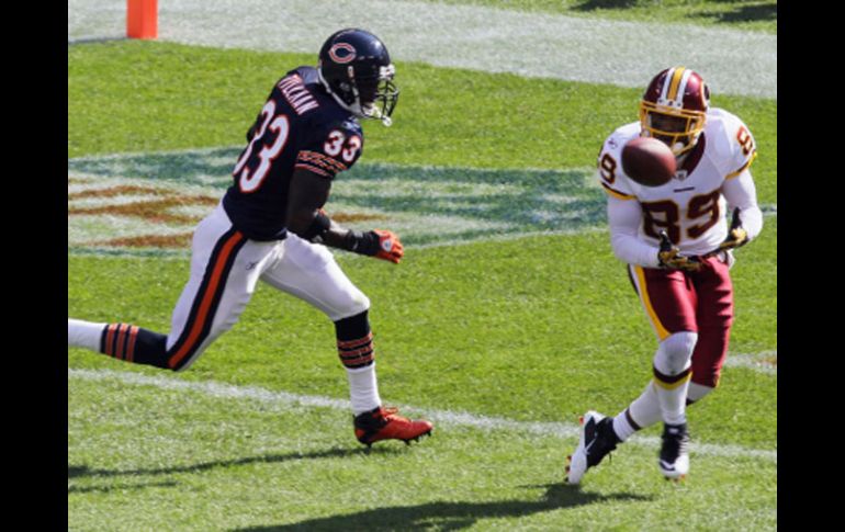 Deportes | Washington pudo sacar la victoria de 17-14 en el Soldier Field Pieles Rojas ganan a Osos Washington pudo sacar la victoria de 17-14 en el Soldier Field Por: AP 24 de octubre de 2010 - 14:59 hs Santana Moss (89) recibe un pase en la zona de anotación para la causa de los Piles Rojas. AP / CHICAGO, ILLINOIS (24/OCT/2010).- DeAngelo Hall igualó el domingo una marca de la NFL con cuatro intercepciones, una de las cuales regresó 92 yardas para touchdown, y los Redskins de Washington capturaron a Jay Cutler en cuatro ocasiones y forzaron cinco entregas de balón en su victoria por 17-14 sobre los Bears de Chicago. Hall empató el récord que ostentan otros 18 jugadores, pero es el primero en interceptar cuatro pases desde que Deltha O'Neal lo hizo con Denver en el 2001. Su intercepción a una mano y el regreso para anotación al final del tercer cuarto fue una de las jugadas destacadas de la jornada y le dio a los Redskins una delantera que ya no perderían. Es la tercera derrota de Chicago (4-3) en cuatro partidos. Washington (4-3), por su parte, igualó su total de victorias de la temporada pasada y se unió a un creciente grupo de equipos que tunden a Cutler. El quarterback ha sido capturado 19 veces en sus últimos tres encuentros y, cuando no estaba en el suelo, parecía estarle lanzando a Hall. Temas NFL Futbol Americano Pieles Rojas de Washington Osos de Chicago Recibe las últimas noticias en tu e-mail Todo lo que necesitas saber para comenzar tu día Registrarse implica aceptar los Términos y Condiciones