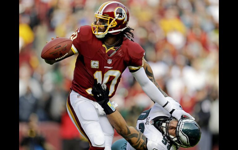 Deportes | Washington logra una victoria de 31-6 ante Filadelfia Pieles Rojas regresa a la senda del triunfo Washington logra una victoria de 31-6 ante Filadelfia Por: AP 18 de noviembre de 2012 - 16:19 hs Robert Griffin da muestra de que será uno de los mariscales estelares de la NFL. AP / LANDOVER, MARYLAND (18/NOV/2012).- Robert Griffin III logró cuatro pases de touchdown y los Pieles Rojas de Washington cortaron una racha de tres derrotas al vencer el domingo 31-6 a los alicaídos Águilas de Filadelfia. Griffin completó 14 de 15 pases para 200 yardas y además acarreó el balón 11 veces con lo que acumuló 85 yardas. Sus anotaciones fueron con pases de 6, 49, 61 y 17 yardas, uno en cada cuarto. En su primera apertura en la NFL, el mariscal de campo de Filadelfia Nick Foles completó 21 de 46 pases para 204 yardas. Sus primeros dos posesiones terminaron en intercepciones. Foles fue titular en lugar de Michael Vick, quien sufrió una conmoción en la derrota la semana pasada contra Dallas. Los Pieles Rojas quedaron con marca de 4-6. Las Águilas (3-7) han perdido seis en fila y la continuidad de su entrenador Andy Reid, tras 14 años al frente, está en duda. Temas NFL Futbol Americano Águilas de Filadelfia Pieles Rojas de Washington Lee También Futbol hoy 16 de octubre de 2025: ¿Dónde ver los partidos en vivo? Atlas Femenil paga caro un error y ve alejarse la Liguilla ante América Cada partido será una final para nosotros: Diego Cocca México encadena cuatro partidos sin ganar, algo que no sucedía desde 2021 Recibe las últimas noticias en tu e-mail Todo lo que necesitas saber para comenzar tu día Registrarse implica aceptar los Términos y Condiciones