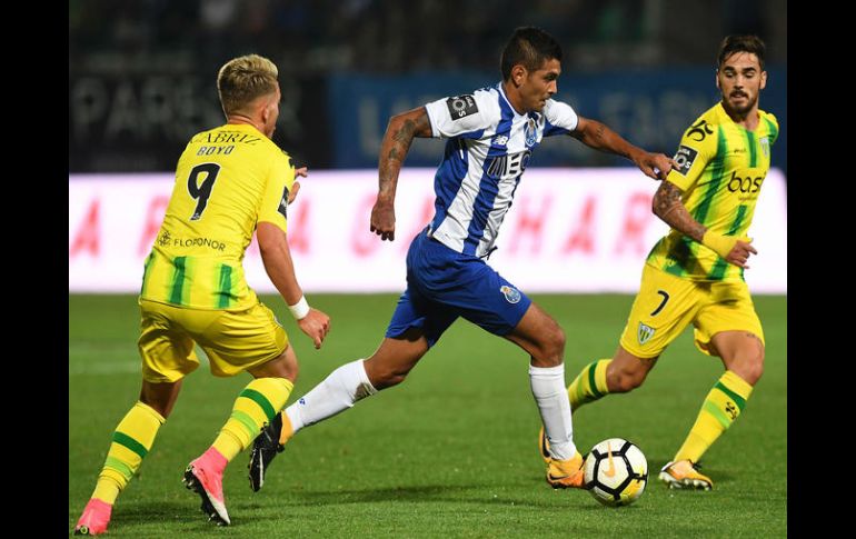 TONDELA, PORTUGAL (13/AGO/2017).- Se disputó la segunda fecha de la Liga Portuguesa de futbol y el club Porto, que tiene entre sus filas a los mexicanos Diego Reyes, Miguel Layún, Héctor Herrera y Jesús Manuel "Tecatito" Corona, sacó una ajustada victoria de 1-0 contra Tondela.Los Dragones se hicieron del triunfo en condición de visitantes en la cancha del Estadio Joao Cardoso y supieron aguantar la mínima diferencia desde el minuto 37, con el tanto que hizo el camerunés Vincent Aboubakar.El africano, que una vez más respondió con goles en este inicio de campaña, estuvo acompañado en el ataque por "Tecatito" Corona, único mexicano que fue titular en el esquema del entrenador Sergio Conceiçao.El sonorense estuvo participativo por los costados y en ocasiones se animó a disparar de larga y corta distancia, en busca de dañar la meta defendida por Claudio Ramos."Tecatito" se fue de cambio al 84 para cederle su lugar al veracruzano Miguel Layún, quien tuvo sus primeros minutos oficiales de la campaña.Antes, al 69, ingresó el tijuanense Héctor Herrera por el español Olivier Torres y en la banca, Diego Reyes apreció todo el encuentro.De esta forma, Porto llegó a seis unidades para mantener el buen paso en este amanecer de la Primeira Liga, donde peleará palmo a palmo contra el actual campeón, Benfica, en busca del título.