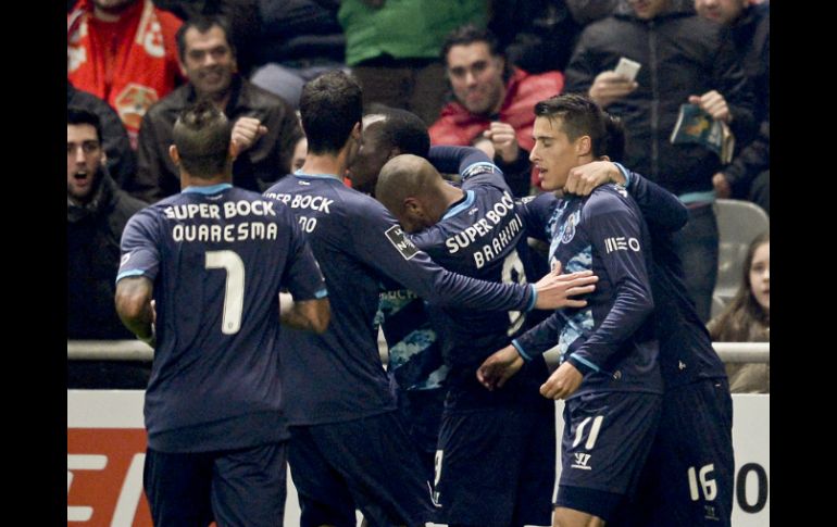Deportes | Los dragones vencieron 1-0 en el estadio Municipal durante el inicio de la jornada 24 Porto y Herrera logran trabajada victoria ante Braga Los dragones vencieron 1-0 al Braga en el estadio Municipal, en el partido que abre la jornada 24 de la Primeira Liga Por: NTX 6 de marzo de 2015 - 17:45 hs El equipo de Oporto celebra tras el término del partido, en el que el mexicano Héctor Hernández se mostró participativo. EFE / F. Delgado BRAGA, PORTUGAL (06/MAR/2015).- Porto, con el mexicano Héctor Herrera, debió trabajar de más este viernes en el estadio Municipal para vencer apenas 1-0 al Braga, en partido que abrió la jornada 24 de la Primeira Liga. Los "dragones" mandaron en el partido gracias a una mayor posesión, sin embargo esta vez no fueron tan contundentes en los metros finales, motivo por el cual se marcharon a vestidores empatados a ceros. El colombiano Jackson Martínez merodeó varias veces el área contraria sin éxito y, para el complemento, redobló esfuerzos en busca de inaugurar el marcador. Al minuto 61, se perfilaba a escaparse con el balón pero sintió un pinchazo en la pierna izquierda y enseguida se fue al piso para que las alarmas se encendieran. Instantes después fue sustituido y tanto entrenador, como afición y selección colombiana (se juega la Copa América), se mantendrán ahora a la espera de los exámenes correspondientes para determinar el alcance de la lesión. Para el minuto 73, el español Cristian Tello logró el merecido 1-0, resultado que supone la sexta victoria consecutiva del Porto, equipo que con 58 puntos, es segundo general, y se mantiene en espera del descalabro del líder Benfica (59). Braga por su parte, se quedó con 46 puntos en la cuarta posición. El mexicano Herrera jugó los 90 minutos y estuvo participativo, mientras que el capitalino Diego Reyes, sigue sin ser considerado por el primer equipo y todo indica que ya fue relegado al Porto B. Temas Mexicanos en Europa Futbol Internacional Porto FC Liga portuguesa de futbol Lee También Chivas vs Mazatlán • Momentos Destacados • Jornada 13 • Apertura 2025 La generación dorada del 2005 se apaga con el retiro de Héctor Moreno Cruz Azul vs América • Momentos Destacados • Jornada 13 • Apertura 2025 México cae ante Corea del Norte en su debut del Mundial Sub-17 Femenil Recibe las últimas noticias en tu e-mail Todo lo que necesitas saber para comenzar tu día Registrarse implica aceptar los Términos y Condiciones