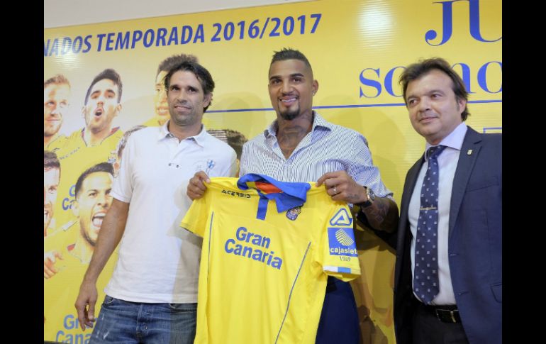 LAS PALMAS, ESPAÑA (02/AGO/2016).- Cerca de seis mil aficionados de la UD Las Palmas han aclamado este martes a Kevin-Prince Boateng en su presentación como nuevo jugador del equipo amarillo para la temporada 2016-2017.La tribuna del estadio de Gran Canaria ha acogido la puesta de largo del mediático jugador germano-ghanés, procedente del Milan, quien ha llegado este mediodía a la isla. No se recuerda en la historia reciente de la entidad que uno de los fichajes extranjeros de Las Palmas haya despertado tanta expectación.Las "muestras de cariño" que pedía el club que dispensaran al jugador a su llegada a Gran Canaria han quedado patentes desde un primer momento, con medio centenar de aficionados en el aeropuerto.La Unión Deportiva firma al futbolista, de 29 años, por una sola temporada, y con su debut en España completará su particular póquer de ligas europeas, tras haber jugado en Alemania, Inglaterra e Italia.En su presentación, el mayor de los hermanos Boateng ha dicho que he aceptado la oferta de Las Palmas por la insistencia de sus dirigentes para "un bello proyecto" y porque buscaba un sitio donde le den "cariño" y crean en él.Para Kevin-Prince Boateng, fichar por Las Palmas es una puerta abierta para reconducir su carrera, salpicada en los últimos tiempos por episodios de indisciplina, como su expulsión del Schalke 04 alemán por bajo rendimiento, en 2015, o del equipo nacional de Ghana, un año antes, tras insultar al seleccionador durante el Mundial de Brasil.Su fichaje por Las Palmas, un equipo que tiene como meta la permanencia en la Primera División española, no solo ha sorprendido, sino que ha dado la vuelta al mundo a través de las redes sociales.Medios digitales de todo el planeta se han hecho eco de la noticia, dado el carácter mediático del futbolista, icono de la moda en Italia, casado con la modelo y presentadora Melissa Satta.Tras iniciarse en clubes alemanes, debutó en la liga inglesa en 2007, en la que jugó en el Tottenham y el Portsmouth.En Italia defendió al Génova y en 2010 fichó por el Milan, en el que ganó una Liga.