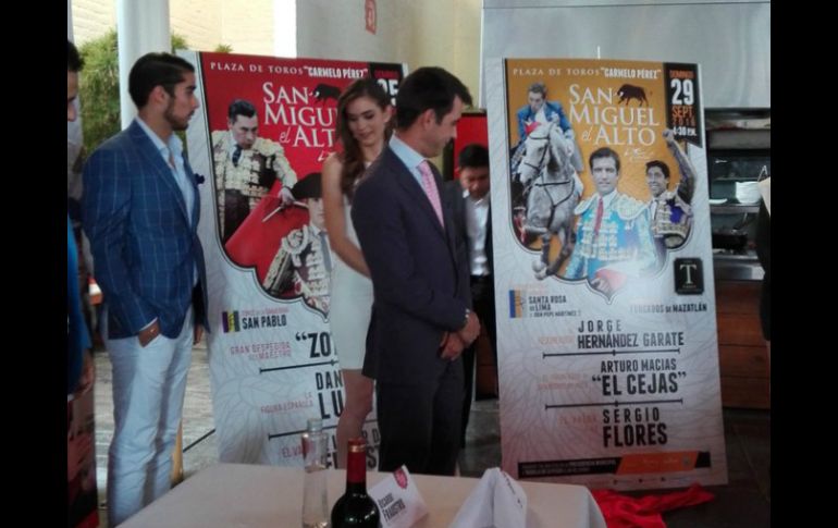 GUADALAJARA, JALISCO (26/AGO/2016).- San Miguel El Alto se viste de luces. Este viernes se anunciaron los carteles, por parte de la empresa Casa Toreros, para la Feria de San Miguel, con dos corridas que se llevarán a cabo los días domingo 25 y jueves 29 de septiembre en la Plaza de Toros "Carmelo Pérez", con figuras del toreo como Daniel Luque, Ricardo Frausto, el rejoneador Jorge Hernández, Sergio Flores y la presentación de Arturo Macías "El Cejas" y Eulalio López "Zotoluco" en su despedida."Ya es nuestro cuarto año consecutivo que tenemos la oportunidad de dar estos festejos en una plaza singular, muy bonita, como es esta plaza de cantera de San Miguel El Alto, y con la presentación de estos carteles, la gente de San Miguel lo ha tomado con mucha alegría y eso nos tiene entusiasmados", dijo Pablo Moreno, director de Casa Toreros."La verdad es que cuesta mucho trabajo cada año, esto en el toro cada cabeza es un mundo, cada cabeza piensa distinto y tuvimos una plática con la gente de San Miguel y nos decía que los triunfadores tienen que repetir, siempre hay en la baraja muchos toreros y decidimos que repitieran 'Cejas', 'Zotoluco', que es su campaña de despedida, tenía que estar", siguió el empresario taurino.Por su parte, el matador Arturo Macías, "El Cejas", se mostró contento con la idea de regresar a sus raíces, a los Altos de Jalisco, para formar parte del cartel de los festejos de la Feria de San Miguel El Atlo."Yo estoy con mucha ilusión, para mí San Miguel es una joya especial durante la temporada, no es una corrida más, pero ésta en lo personal tiene algo especial, yo tengo sangre de San Miguel, de Jalos, aparte la plaza está bien bonita, te inspira sentirte torero, con la cantera, eso motiva y mucho más", dijo el matador diestro. "Estar ahí me recuerda a mis abuelos, ya los dos murieron, ambos eran de los Altos de Jalisco y siento que se sentirían orgullosos de mí, todo eso hace que la sangre jale, por eso es especial para mí", siguió Arturo Macías.En la corrida del domingo 25 de septiembre se lidiarán toros de la ganadería de San Pablo, mientras que en la del jueves 29 habrá toros de la ganadería Santa Rosa de Lima de don Pepe Martínez. Además ese mismo día, el jueves, se contará con la participación de los Forcados de Mazatlán, por lo que promete ser toda una fiesta. EL INFORMADOR / JAVIER ROBLES
