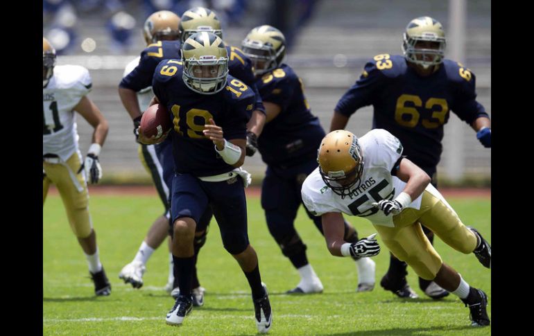 Deportes | El cuadro universitario vence 52-0 a Potros Salvajes de la UAEM Pumas CU abre temporada con paliza El cuadro universitario vence 52-0 a Potros Salvajes de la UAEM Por: NTX 8 de septiembre de 2012 - 20:11 hs Acción del partido entre Pumas CU y Potros Salvajes en la primera jornada de la ONEFA. MEXSPORT / MÉXICO, D.F. (08/SEP/2012).- El equipo Pumas CU abrió la temporada 2012 de la Liga Mayor de la Organización Nacional Estudiantil de Futbol Americano (ONEFA) con un sólido triunfo de 52-0 sobre los Potros Salvajes de la UAEM en el Estadio Olímpico Universitario. El plantel comandado por el head coach Raúl Rivera aprovechó siete entregas del rival para aplastar a los Potros, además de una destacada labor del quarterback José Luis Canales, quien contó con cuatro anotaciones, una en jugada personal y las otras mediante pases para touchdown. El encuentro inició con una jugada de Canales de 11 yardas por tierra que más el extra de Alan Paoli pusieron el 7-0, después el mismo José Luis conectó con Octavio Zapata un envío de 21 yardas, para lo cual jugaron la conversión de dos puntos y así aumentar la ventaja. En el segundo periodo, Rivera mandó a la cancha como mariscal a Bruno Márquez, quien sumó un touchdown de 61 yardas para Gerardo Aguilar, más un gol de campo de Paoli posteriormente pusieron el parcial 25-0 para irse al descanso con una ventaja cómoda. En la segunda mitad, Canales volvió a dirigir los controles ofensivos, y logró otra anotación, esta vez se combinó con José Sánchez en espiral de 25 yardas, aunque el intento de conversión no prosperó por parte de los universitarios, quienes no daban oportunidad a los mexiquenses de reacción alguna. El marcador se volvió a mover, pero ya hasta el último cuarto, cuando Canales sumó otro envío de anotación con Santiago Miranda y después fue la defensiva la que amplió el marcador cuando Ángel Ruiz recuperó un balón suelto y lo condujo 10 yardas hasta la zona final, y por último Erick Espinoza se escapó 27 yardas para cerrar el marcador 52-0. Asimismo, se le rindió un pequeño tributo al ex jugador y coach de ambos equipos, Leonardo Lino, durante el encuentro. La próxima semana Pumas CU visitará a los Burros Blancos del IPN y Potros Salvajes recibirá a los Correcaminos UAT Victoria. Temas Futbol Americano ONEFA Lee También México encadena cuatro partidos sin ganar, algo que no sucedía desde 2021 ¿Dónde ver Argentina vs Colombia: semifinal del Mundial Sub-20? Calendario de partidos de la J13 del Apertura 2025 Hirving Lozano confía en el proceso del Tri Recibe las últimas noticias en tu e-mail Todo lo que necesitas saber para comenzar tu día Registrarse implica aceptar los Términos y Condiciones