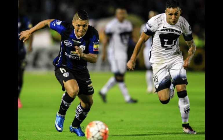 Deportes | La UNAM pierde el partido de ida de cuartos 2-1 ante el Independiente del Valle Pumas cae en su visita a Ecuador La UNAM pierde el partido de ida de cuartos 2-1 ante el Independiente del Valle Por: SUN 17 de mayo de 2016 - 20:49 hs La vuelta se jugará el próximo martes en Ciudad Universitaria. EFE / J. Jácome QUITO, ECUADOR (17/MAY/2016).- En un partido en el que el daño pudo haber sido peor, el equipo mexicano Pumas de la UNAM dejó abierta la serie de cuartos de final de la Copa Libertadores de América, al caer 1-2 ante Independiente del Valle de Ecuador. Los goles de la victoria fueron obra de José Angulo a los minutos 42 y 54. El ecuatoriano Fidel Martínez descontó para los auriazules, al 73. Con este resultado, el cuadro mexicano necesita ganar 1-0 en el duelo de vuelta, que se celebrará el próximo martes; en caso de recibir un tanto, tendría que imponerse por diferencia de dos. Solo el 2-1 para los ecuatorianos en la vuelta llevaría este duelo al alargue. Dos errores del paraguayo Darío Verón en la zaga, así como una increíble falla al frente del uruguayo Matías Britos, parecía que serían la debacle de un Pumas que logró levantarse de momentos muy críticos y mantener serias aspiraciones en la serie. En el inicio, los pupilos de Guillermo Vázquez se pararon con autoridad en campo visitante y generaron dos acciones importantes; la primera, un tiro de esquina por izquierda que el uruguayo Gerardo Alcoba conectó de cabeza, remate que fue rechazado por el portero Librado Azcona. Y al minuto diez, la más clara de Pumas se originó en los pies del argentino Ismael Sosa, quien por derecha hizo una gran jugada para filtrar el balón al uruguayo Matías Britos, pero este de manera increíble mandó a un lado cuando estaba de frente a la portería. La escuadra local había hecho muy poco al frente, pero Junior Sornoza, ex jugador de Pachuca, ya empezaba a mostrar su capacidad y la confirmó con un gran balón para Angulo, quien le ganó la espalda a Verón, para meter un disparo "machucado" que techó a Alejandro Palacios, al minuto 42, e irse así al descanso. Una nueva desatención de Verón en el complemento le permitió a José Angulo entrar solo por el sector derecho del área para aprovechar un balón largo de sector contrario y conectar un cabezazo letal para el 2-0, al minuto 54. La noche se le venía a la visita, que vio cómo "Pikolín" Palacios salvó el tercero, a disparo de Sornoza, y cómo un remate cruzado de Angulo se estrelló de manera angustiosa en el poste derecho. Guillermo Vázquez tardó, pero ajustó de manera correcta con el ingreso de Hibert Ruiz y así los "felinos" tomaron un segundo aire que les permitió acortar distancias. Sosa fue el encargado de generar la acción por derecha, de donde mandó un centro a segundo poste, donde Britos se levantó para conectar un remate al poste, con la fortuna de que el rechace le quedó de frente a Fidel Martínez, quien prendió un derechazo imparable para el 2-1, al minuto 73. El gol le devolvió por completo la confianza a los universitarios, quienes contuvieron por completo al rival para buscar el empate y aunque ya no les alcanzó, regresan a casa con muchas posibilidades de darle la vuelta y ponerse de manera histórica por primera ocasión en semifinales. El arbitraje estuvo a cargo del argentino Mauro Vigliano, quien tuvo una mala labor al perdonarle un penal al cuadro de casa. Marcelo Alatorre (54), Eduardo Herrera (51) y el argentino Ismael Sosa (91) vieron cartón preventivo por la visita; Luis Caicedo (63) y Dixon Arroyo (67) fueron amonestados por los locales. Alineaciones: Independiente del Valle (ECU).- Librado Azcona, Christian Núñez, Arturo Mina, Luis Caicedo, Luis Ayala, Jefferson Orejuela, Dixon Arroyo (Emiliano Tellechea, 84), Junior Sornoza (Gabriel Cortez, 84), Julio Angulo (Jonny Uchuari, 77), Bryan Cabezas y José Angulo. DT Pablo Repetto (URU). Pumas (MEX).- Alejandro Palacios, Marcelo Alatorre, Darío Verón, Gerardo Alcoba, Luis Fuentes, Alejandro Castro, Javier Cortés (Hibert Ruiz, 72), Ismael Sosa, Luis Quiñones (Fidel Martínez, 59), Matías Britos (Dante López, 88) y Eduardo Herrera. DT Guillermo Vázquez. Temas Copa Libertadores Pumas de la UNAM Futbol Internacional Lee También NFL: Sorpresiva derrota de los Eagles ante Giants Futbol hoy 10 de octubre de 2025: ¿Dónde ver los partidos en vivo? México listo para un nuevo desafío en el Mundial Sub-17 Femenil Hamás dice que recibió garantías de que la guerra en Gaza terminó Recibe las últimas noticias en tu e-mail Todo lo que necesitas saber para comenzar tu día Registrarse implica aceptar los Términos y Condiciones
