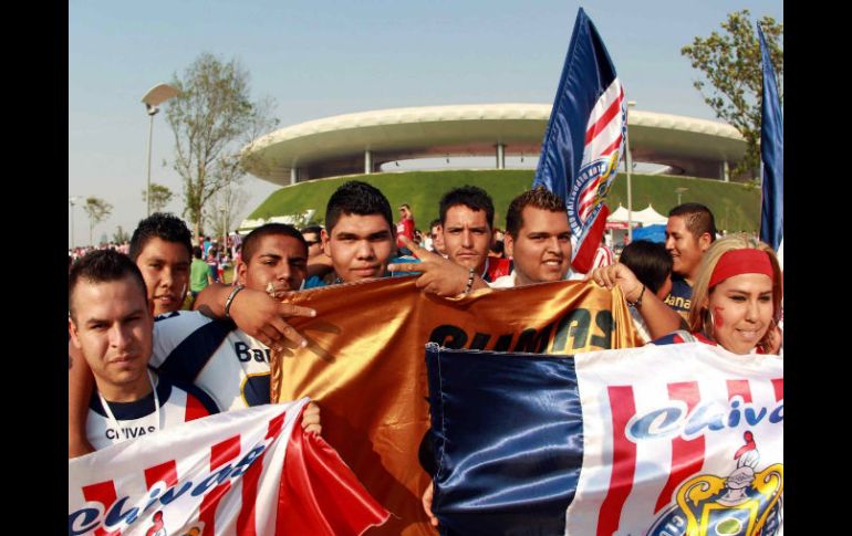 Deportes | Da inicio la semifinal entre Chivas y Pumas Que comience la fiesta en el Omnilife Los aficionados, en su mayoría rojiblancos, comienzan a abarrotar el estadio de las Chivas al inicio del partido Por: EL INFORMADOR 12 de mayo de 2011 - 18:33 hs ZAPOPAN , JALISCO (12/MAY/2011).- Envueltos en un ambiente lleno de música, color y pasión por el futbol, los aficionados que se dieron cita hoy en el estadio Omnilife, para presenciar el partido de ida de las semifinales del torneo clausura 2011 del futbol mexicano, están ansiosos por que el arbitro pite el inicio del partido. Los aficionados, en su mayoría rojiblancos, comienzan a abarrotar el estadio de las Chivas, esperando ver un gran duelo y por supuesto la victoria de los locales. Sin embargo, los pocos, pero ruidosos, aficionados auriazules, confían en llevarse un buen resultado y finiquitar la serie el próximo fin de semana en ciudad universitaria. “Vamos a ganar 2-1, estamos emocionados venimos desde Tepito. Pumas va a salir a ganar y jugar bien como lo han hecho toda la temporada” declaro Omar “el cros”, aficionado felino. Ahora si todo esta listo, los equipos llegaron, los aficionados comienzan a llenar las gradas y en medio de un ambiente de fiesta da inicio la semifinal entre Chivas y Pumas. Aficionados fuera del estadio siguen el partido Mientras que las calles del centro de Guadalajara lucen casi vacías, los bares y cantinas del primer cuadro de la ciudad se encuentran llenas de aficionados que acuden a presenciar por televisión la semifinal que disputan las Chivas y los Pumas. El Molachos, La Fuente y La Maestranza son algunas de las cantinas que registran una inusual afluencia para un jueves. La Rumba, La Prieta Linda y las micheladas La Rana René son otros establecimientos llenos de 'chivas' que ven a su equipo perder uno a cero. EL INFORMADOR / MARÍA DE LA LUZ BERMEJO / RAFAEL ZAPATA Temas Chivas Futbol Mexicano Pumas de la UNAM Liguilla Clausura 2011 Lee También “El diablo fuma”, una dura mirada al abandono infantil en el país NFL: Resultados del Monday Night Football Futbol hoy 14 de octubre de 2025: ¿Dónde ver los partidos en vivo? Orbelín Pineda destaca su orgullo por volver a Guadalajara con el Tricolor Recibe las últimas noticias en tu e-mail Todo lo que necesitas saber para comenzar tu día Registrarse implica aceptar los Términos y Condiciones