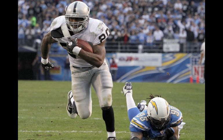 Deportes | Oakland aprovecha errores y rompe con la racha ganadora de San Diego Raiders vence a Cargadores 28-13 Oakland aprovecha errores y rompe con la racha ganadora de San Diego Por: AP 5 de diciembre de 2010 - 19:32 hs Darren McFadden corrió el balón para 97 yardas / SAN DIEGO, ESTADOS UNIDOS (05/DIC/2010).- Jason Campbell acarreó el balón para un touchdown y lanzó un pase para conseguir otro en tanto Darren McFadden corrió el balón para 97 yardas y los Raiders de Oakland capitalizaron los errores de los Cargadores de San Diego para vencerlos el domingo por 28-13. La derrota fue un duro golpe a las aspiraciones de San Diego de avanzar a la postemporada, pues los cuatro veces campeones de la División Oeste de la Conferencia Americana (6-6) están con dos juegos de desventaja cuando restan cuatro partidos por jugarse. Oakland (6-6) revivió una ofensiva terrestre que fue detenida totalmente en dos derrotas en fila y despedazó a los Chargers al avanzar 251 yardas. Michael Bush acumuló 95 yardas. Los Raiders barrieron la serie de la temporada por primera vez desde el 2001. La racha de los Cargadores de 18 victorias en fila en diciembre, que empató una marca de la NFL con la cifra más alta de victorias en cualquier mes de la campaña, llegó estrepitosamente a su fin. Temas NFL Futbol Americano Cargadores de San Diego Raiders de Oakland Lee También Hirving Lozano confía en el proceso del Tri César Huerta destaca la competencia interna en la Selección Mexicana Futbol hoy 15 de octubre de 2025: ¿Dónde ver los partidos en vivo? México muestra mejoría, pero no le alcanza ante Ecuador Recibe las últimas noticias en tu e-mail Todo lo que necesitas saber para comenzar tu día Registrarse implica aceptar los Términos y Condiciones