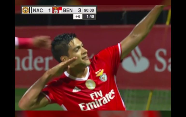 CIUDAD DE MÉXICO (27/AGO/2016).- Tras marcar por segundo partido al hilo con el Benfica, el mexicano Raúl Jiménez festejó su gol al estilo de uno de los últimos ídolos americanistas, Cuauhtémoc Blanco.Jiménez fue el encargado de sellar el triunfo 3-1 de las águilas rojas ante el Nacional de Madeira, en una jugada donde el mexicano robó el esférico ante el descuido de la defensa, para después definir dentro del área.Los primeros tantos del Benfica fueron cortesía de Aly Ghazal, en propia puerta (17'), y André Carrillo (70'); Tobias Figuereido hizo lo propio por el Nacional (64').Con este resultado, y con partidos por definirse en la jornada 3 de Portugal, Benfica marcha líder con siete puntos.