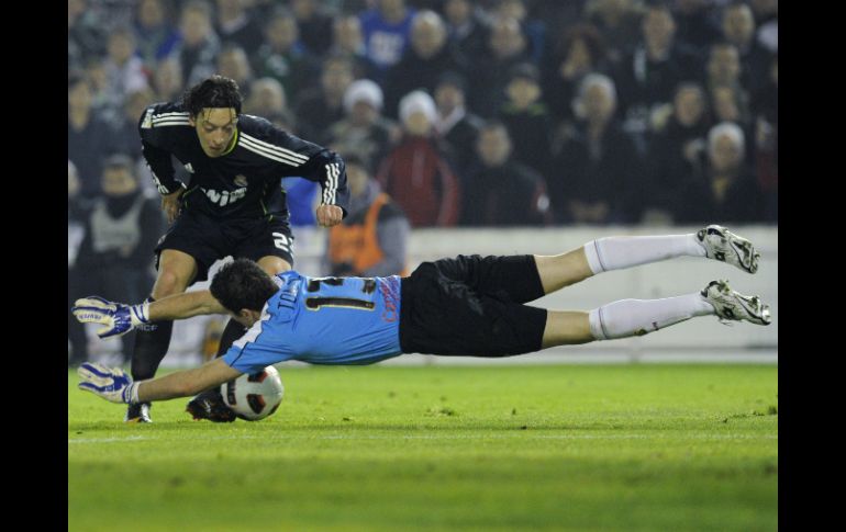 Deportes | El cuadro merengue gana y sigue a la caza del líder Barcelona Real Madrid no se rinde El cuadro merengue gana y sigue a la caza del líder Barcelona Por: EFE 7 de marzo de 2011 - 04:45 hs El alemán Mesut Özil (izq.), del Madrid, quien dio los pases para los primeros dos goles, es interceptado por el arquero Rodríguez. AP / MADRID, ESPAÑA (07/MAR/2011).- El Real Madrid, con dos goles del francés Karim Benzemá y otro del togolés Emmanuel Adebayor, se impuso al Racing en un partido en el que los blancos fueron muy superiores en la primera parte, para dormirse en la segunda y despertar sólo tras el gol del sueco Kennedy Bakircioglu, después de que Pablo Pinillos fallara un penal. El Real Madrid, que no acusó la baja de Cristiano Ronaldo y también falló un penal, por medio de Adebayor, puso fin a una racha de seis partidos invicto del Racing. Las bajas condicionaron las alineaciones de ambos equipos. En el Real Madrid, Cristiano Ronaldo se perdía su primer partido de Liga de la temporada y en el Racing destacaban las ausencias de los lesionados Adrián González y Manuel Arana, y de los sancionados Henrique y Domingo Cisma. José Mourinho apostó por jugar con dos "nueves", Adebayor y Benzemá, y situó a Esteban Granero en la medular junto a Xabi Alonso; mientras que Marcelino García Toral presentó un equipo de circunstancias, con el joven canterano Osmar Barba como central y debutando como titular el media punta mexicano Giovani dos Santos. El Real Madrid en apenas tres minutos anotó dos goles, con sendas asistencias de Mesut Özil, para que marcaran a placer Adebayor y Benzema. El primero fue la guinda de una triangulación al primer toque fraguada en la frontal del área y, el siguiente, el remate para una asistencia vertical del alemán a la que estuvo atento el togolés. Al descanso se llegó con un marcador corto para los méritos de un Real Madrid que, de la mano de Özil, pasó por encima del Racing y disparó 14 veces a puerta. El Racing salió bien en la segunda parte y pudo acortar distancias cuando Giovani se internó en el área y fue objeto de un claro penal por derribo de Xabi Alonso. Pero Pinillos, como la pasada jornada hizo Adrián, lo ejecutó mal con un disparo flojo que atajó Casillas. Para la segunda parte, la ambición de los cántabros dio fruto en una recuperación de balón que aprovechó Lacen, para dar un pase vertical a Kennedy, que batió a Casillas sin oposición. El Racing se fue por el empate, pero el Real Madrid se sacudió la galbana respondiendo al gol de los cántabros en una jugada vertical de Di María, quien asistió a Benzemá para que el francés batiera a Toño con un tiro cruzado. En los últimos minutos, el propio Di María se fue de dos defensas y acabó siendo derribado por Torrejón. Adebayor lanzó la pena máxima pero Toño despejó. Puyol, descartado ante el Arsenal El capitán del Barcelona, Carles Puyol, no jugará contra el Arsenal mañana en el Camp Nou, debido a que se ha resentido de los problemas que arrastra en la rodilla, confirmó ayer el club catalán. Carles Puyol, lesionado desde el 18 de enero, sufre una tendinopatia en el vasto externo de la rodilla izquierda. Antes del partido contra el Zaragoza, el jugador parecía que iba a recibir el alta, a la espera de cómo evolucionaba el entrenamiento de ayer y hoy. Pero el Barça lo descartó para no arriesgarlo más. Otros resultados de ayer: Málaga 0-1 Osasuna Levante 1-0 Espanyol Sporting Gijón 2-0 Getafe Hércules 1-2 Almería Athletic Bilbao 2-0 Sevilla Hoy por TV La Coruña vs. Real Sociedad 14:00 horas • Sky 506 Temas Futbol Español Futbol Internacional Real Madrid Lee También Atlas Femenil, al límite de sus opciones en el Apertura 2025 Chivas Femenil asegura su pase a la Liguilla por doceavo torneo consecutivo Selección Mexicana busca revancha y respuestas ante Ecuador Ivar Sisniega reveló que México tendrá partidos en Centroamérica Recibe las últimas noticias en tu e-mail Todo lo que necesitas saber para comenzar tu día Registrarse implica aceptar los Términos y Condiciones