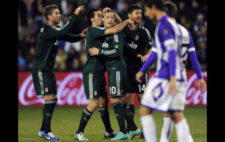 Deportes | El equipo merengue gana con doblete de Özil y presiona a Barça y Atlético Real Madrid remonta y vence al Valladolid El equipo merengue gana con doblete de Özil y presiona a Barça y Atlético Por: AFP 8 de diciembre de 2012 - 15:07 hs MADRID, ESPAÑA (08/DIC/2012).- El Real Madrid, con un doblete del alemán Mesut Özil, sufrió pero pudo ganar en su visita a Valladolid (3-2), este sábado en la 15ª jornada de la Liga española, con lo que presionó a los dos equipos por delante en la tabla, el líder Barcelona y el Atlético. Con estos tres puntos, los hombres de Jose Mourinho se acercan a ocho puntos del Barça y a dos de sus vecinos del Atlético, segundos, antes de sus respectivos partidos del domingo contra el Betis (5º) y el colista Deportivo de La Coruña. Los tantos del Valladolid llevaron la firma del angoleño Manucho (7, 22), mientras que para el Real Madrid anotaron el francés Karim Benzema (12) y el alemán Mesut Özil (45) en la primera mitad. En la segunda, Özil (72) consiguió el 3-2 definitivo, culminando la remontada. El triunfo es especialmente importante para el equipo blanco, ya que fue perdiendo en dos ocasiones en el marcador y un tropiezo en el estadio José Zorrilla les hubiera dejado en una situación todavía más complicada. El primer tanto del partido llegó en el 7, cuando Manucho aprovechó un balón perdido tras un mal rechace de la defensa de los madrileños en un saque de esquina, pero el empate 1-1 llegó en el 12, cuando José Callejón robó un balón y dio un pase de la muerte a Benzema, que no falló. En el 19, Cristiano Ronaldo rozó el gol con un potente disparo que despejó de puños el arquero venezolano Dani Hernández y en el 22 Manucho volvió a poner por delante a los vallisoletanos, de nuevo en un córner, esta vez rematando de cabeza directo a la red. El Valladolid sufrió un serio contratiempo en el 27, cuando el alemán Patrick Ebert tuvo que ser sustituido por lesión. El gol del 2-2 llegó en el 45, con el alemán Mesut Özil, que empujó a la red tras recibir un pase de tacón de Benzema. El tercero del Real Madrid lo consiguió de nuevo Özil, ejecutando a la perfección una falta directa. En el resto de partidos del día destacó la goleada del Málaga del chileno Manuel Pellegrini sobre el Granada (4-0), lo que permitió a los blanquiazules colocarse provisionalmente en la cuarta posición, en zona de Liga de Campeones. El Málaga igualó a puntos con el Betis, ahora quinto y que lo tendrá complicado contra el Barça el domingo, en el partido estelar del fin de semana en el fútbol español. Por el momento, los malagueños cumplieron a la perfección su labor, con tantos de Joaquín (minuto 27), el argentino Javier Saviola (33), Ignacio Camacho (75) y el paraguayo Roque Santa Cruz (85). Después de haber recibido goles en sus tres últimos partidos (Cacereño en la Copa del Rey, Getafe en la Liga y Anderlecht en la Liga de Campeones), el Málaga mantuvo el orden defensivo y esta vez su arquero argentino Willy Caballero pudo frenar a los atacantes rivales. En otro partido de este sábado, el Getafe (6º) se dejó en el descuento dos puntos en su visita a la Real Sociedad (9º), con la que empató 1-1. En el 86, Ángel Lafita logró de cabeza, a centro de Jaime Gavilán, el primero y único para los madrileños, que parecía suponer los tres puntos, pero el lateral Carlos Martínez (90+1), también de cabeza y en su caso a centro de Alberto De la Bella, igualó en el descuento final. El último partido del sábado enfrentará a Osasuna (16º) y Valencia (12º). Este último equipo estrenará entrenador, Ernesto Valverde, sustituto del argentino Mauricio Pellegrino, destituido hace una semana. Temas Futbol Español Futbol Internacional Real Madrid José Mourinho Lee También Sociales: El Informador inicia una nueva etapa con la moderna imprenta "Doña Stella" Muere Miguel Ángel Russo, entrenador de Boca Juniors Futbol hoy 9 de octubre de 2025: ¿Dónde ver los partidos en vivo? IberoMedia Global realiza su primer Encuentro Empresarial Internacional Recibe las últimas noticias en tu e-mail Todo lo que necesitas saber para comenzar tu día Registrarse implica aceptar los Términos y Condiciones