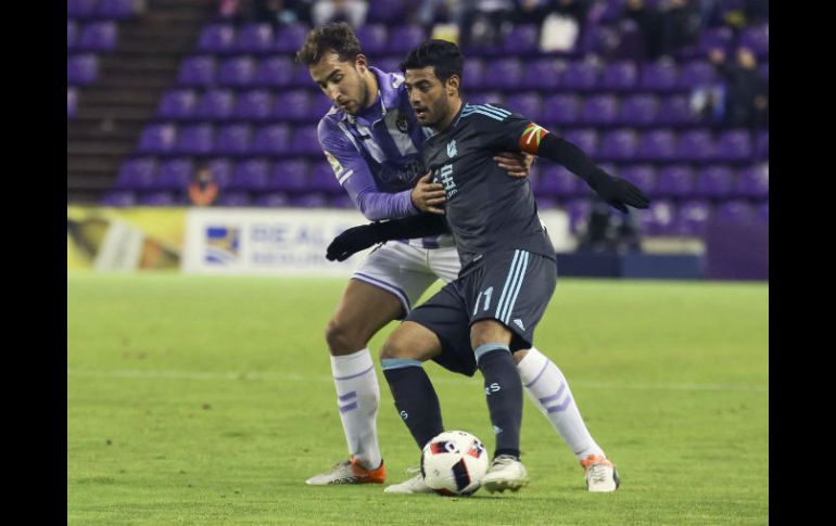 VALLADOLID, ESPAÑA (01/DIC/2016).- La Real Sociedad donde milita el delantero mexicano Carlos Vela resolvió la eliminatoria de Copa del Rey ante el Valladolid, de Segunda División, en el duelo de ida (1-3), ante un rival que no se amilanó y jugó al ataque desde el inicio.El Valladolid pagó los fallos defensivos ante un rival de Primera que hizo valer la efectividad de sus jugadores.El conjunto donostiarra salió dispuesto a resolver de manera inmediata y, en la primera ocasión de que dispuso, inauguró el marcador con un remate de Íñigo Martínez tras un córner.Pero los locales, lejos de amedrentarse, comenzaron a presionar para controlar el balón y crear ocasiones, que llegaron a través de Mata, en el minuto 8, aunque su remate fue muy flojo y lo detuvo Rulli sin problemas, y en el minuto 13, con una internada en el área que tuvo que frenar el guardameta de la Real de manera irregular.El colegiado no dudó en señalar la pena máxima, que se encargó de transformar el propio Mata, con un disparo raso a la derecha de la portería de Rulli, para empatar de nuevo el encuentro y dar esperanzas a su equipo.Cinco minutos después, el delantero del Real Valladolid dispuso de una nueva oportunidad tras un contragolpe que finalizó con un disparo al larguero y, justo en la siguiente jugada, Vela aprovechó un buen pase de Rulli y sorprendió a Pau Torres, aunque un asistente señaló un fuera de juego e invalidó el gol del conjunto vasco.La Real, tras marcar el gol, mostró poca intensidad ofensiva y los locales siguieron controlando la posesión y pudieron llegar con peligro al área visitante, de la mano de Villar, que remató forzado y el balón terminó en las manos de Rulli, y de Jordán, que superó al meta argentino, aunque en fuera de juego. Así, se llegó al descanso con el empate a uno.La segunda mitad comenzó con un Real Valladolid que intentó asediar el área visitante, mientras que los de Eusebio Sacristán mantuvieron su actitud conservadora, a la espera de un fallo local.Ese fallo llegó en el minuto 62, cuando Anuar perdió el balón antes de llegar al centro del campo, lo que aprovechó Juanmi para llegar al área local prácticamente solo y rematar con potencia, dejando a Pau Torres sin opciones de atajar el disparo e impedir el 1-2.Fue un jarro de agua fría para los locales, que se durmieron en defensa y eso, ante un rival de calidad, se paga caro. Así, en el minuto 74, Juanmi entró de cabeza con velocidad desde el centro del área para rematar un gran centro de Carlos Martínez y poner el 1-3 en el marcador.El Real Valladolid pudo haber marcado otro gol, pero el un juez de línea detuvo una internada de Mata en el área donostiarra cuando se plantaba solo delante de Rulli al señalar un fuera de juego muy protestado por los locales.El delantero mexicano Carlos Vela inició el partido como parte del once titular y salió como cambio por Granero al minuto 69.Antes de comenzar el encuentro, se guardó un minuto de silencio en memoria de las víctimas del accidente de avión que se produjo en Colombia en el que murieron 71 personas, entre ellas 19 jugadores y el cuerpo técnico del equipo brasileño Chapecoense.