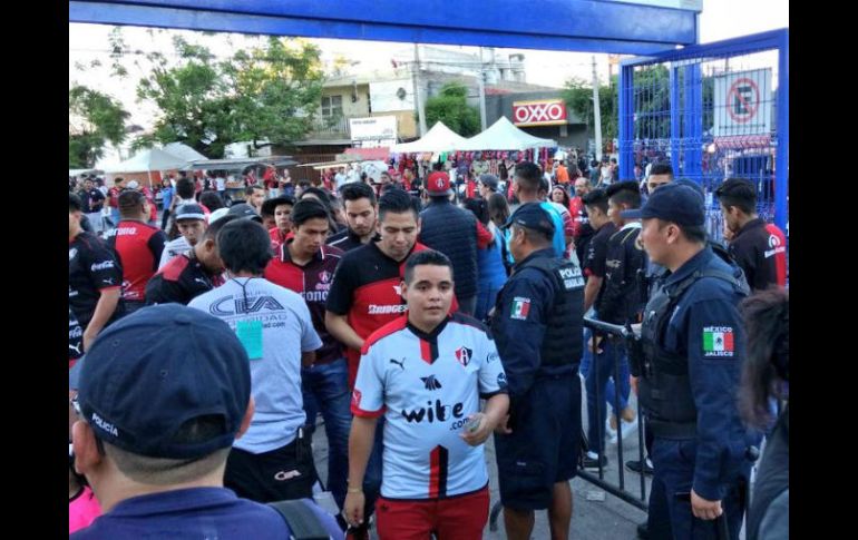 GUADALAJARA, JALISCO (01/ABR/2017).- Debido a que cuentan con un historial no tan bueno y sin nada qué presumir entre las barras de Atlas y Xolos de Tijuana, para el partido de este sábado en el Estadio Jalisco, el grupo de animación del equipo fronterizo, denominado "La Masacre de Tijuana", que hizo el viaje con unas 200 personas, fue custodiado por unos 30 policías, mismos que se ubicaron en la cabecera sur del Coloso de la Calzada Independencia, esto para evitar que existan problemas entre los fanáticos.En noviembre del 2015 ocurrió una pelea entre estas dos aficiones, la cual dejó algunos policías heridos en las afueras del Estadio Caliente de la frontera norte de nuestro país; un año después, en octubre del 2016, los problemas volvieron a aparecer, nuevamente en el Estadio Caliente, pero en esta ocasión fueron aficionados del Atlas contra los policías que resguardaban la seguridad en aquel inmueble fronterizo.Por lo tanto, no está por demás cuidar la integridad de los aficionados de este grupo de animación que hizo el viaje desde aquella ciudad bajacaliforniana, quienes por cierto, festejaron los goles a todo pulmón, aquellos anotados por parte de Avilés Hurtado, uno de ellos un verdadero poema, de chilena y que mandó callar a todo un estadio que registró una entrada regular.Abucheos, insultos por parte de su similar del Atlas, "La Barra 51", que por cierto, cumplió 19 años de existencia, era lo que aparecía en todo lo alto, aunque no hacían caso, porque en realidad, el encuentro ofrecía el espectáculo suficiente como para que hubiera pleitos en la tribuna.EL INFORMADOR / JAVIER ROBLES