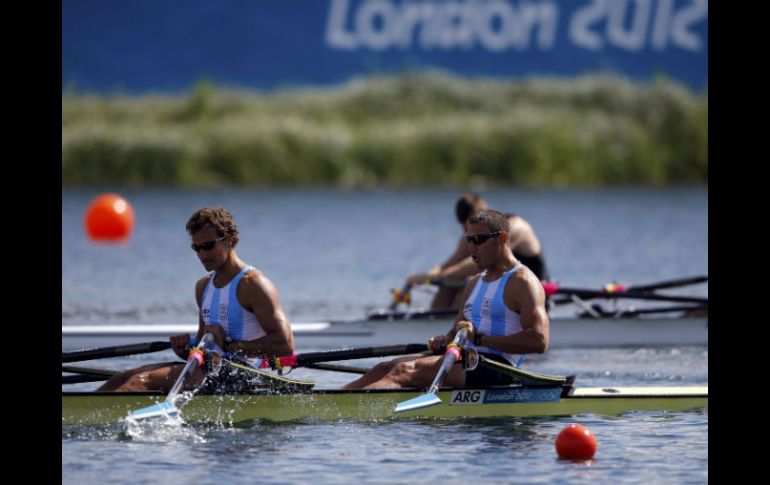 LONDRES, INGLATERRA (28/JUL/2012).- La dupla argentina conformada por Cristian Rosso y Ariel Suárez clasificó a las semifinales de remo en doble par masculino, al llegar tercera en su heat eliminatorio.