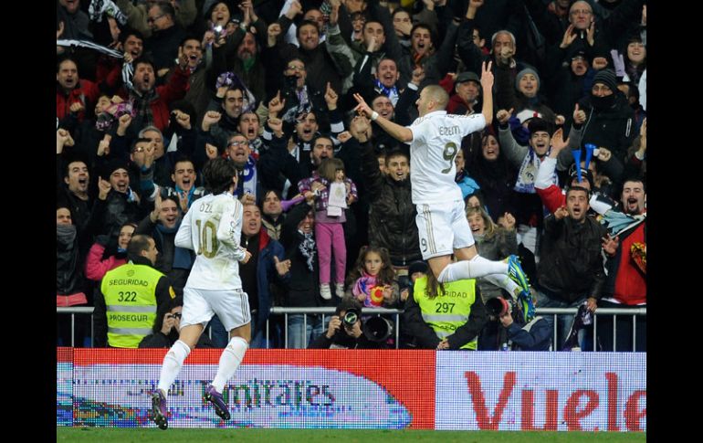 Deportes | El cuadro merengue perdía 0-2 y saca el partido en la segunda mitad 3-2 ante el Málaga Remontada del Real Madrid El cuadro merengue perdía 0-2 y saca el partido en la segunda mitad 3-2 ante el Málaga Por: AFP 3 de enero de 2012 - 16:20 hs Özil y Benzemá festejan el tercer gol del Real Madrid en el partido. AFP / MADRID, ESPAÑA (03/ENE/2012).- El Real Madrid remontó este martes un adverso 2-0 ante el Málaga para terminar imponiéndose por 3-2 en el partido de ida de los octavos de final de la Copa del Rey, en la que el Alcorcón y el Mirandés dieron la sorpresa al imponerse al Levante (2-1) y Racing (2-0), respectivamente. El club 'blanco' culminó la remontada con un tanto del atacante francés Karim Benzem á (78), después de que Sergio Sánchez (9) y el argentino Martín Demichelis (28) colocaran al equipo andaluz por delante en el marcador con sendos goles de cabeza. El centrocampista alemán Sami Khedira (68) y el delantero argentino Gonzalo (70) Higuaín lograron los dos primeros tantos del conjunto 'merengue'. Por su parte, el Alcorcón se adelantó mediante un tanto de Borja Pérez en el minuto 12 de juego, rápidamente contrarrestado por el conjunto levantino en el 22 gracias al gol de Miguel Pallardó, quien aprovechó un balón suelto en la frontal. Sin embargo, Nagore aprovechó un rechace para subir el gol de la victoria para el Alcorcón, que da opciones para clasificarse a los cuartos de final en el encuentro de vuelta en el campo del Levante. El Mirandés también dio la campanada al superar con facilidad al Racing Santander. Pablo Infante y Mikel Martins marcaron los tantos del histórico triunfo de este equipo. Por su parte, el Atlhletic Bilbao se tuvo que conformar con un empate a cero en su visita al campo del Albacete. En la competición copera, se disputarán el miércoles el Barcelona-Osasuna y Valencia-Sevilla, así como el Real Sociedad-Mallorca y el Córdoba-Espanyol. Temas Copa del Rey Futbol Español Futbol Internacional Real Madrid Lee También Hay jugadores que no estuvieron a la altura: Javier Aguirre César Montes intenta justificar la goleada ante Colombia Colombia exhibe a México con goleada en Arlington México vs Colombia • Momentos destacados • Partido amistoso Recibe las últimas noticias en tu e-mail Todo lo que necesitas saber para comenzar tu día Registrarse implica aceptar los Términos y Condiciones
