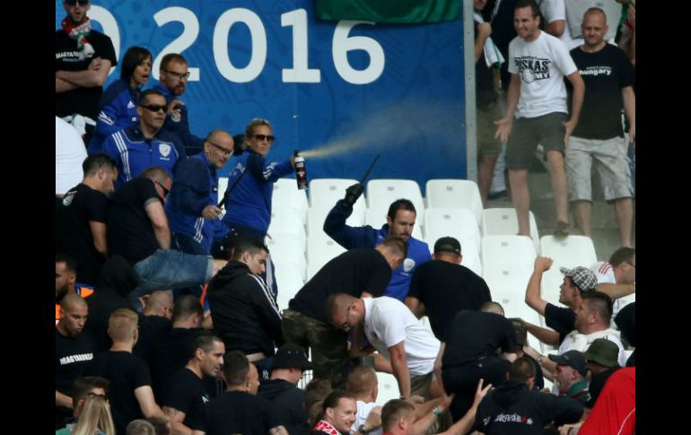 Deportes | Desatan una batalla en la tribuna antes de que comience el juego de la segunda fecha Reportan peleas previas al partido Islandia - Hungría Desatan una batalla en la tribuna antes de que comience el juego de la segunda fecha de la Euro Por: AFP 18 de junio de 2016 - 10:16 hs La policía rápidamente se acercó al lugar para llevar la calma, algo que logró enseguida. EFE / O. Weiken MARSELLA, FRANCIA (18/JUN/2016).- Pequeños enfrentamientos en una tribuna del estadio Vélodrome de Marsella ocupada por los hinchas húngaros, antes del comienzo del partido Islandia-Hungría por la segunda fecha del grupo F de la Eurocopa, se desataron este sábado, sumando más incidentes a un torneo accidentado en el plano extradeportivo. Dos grupos de aficionados húngaros, separados por una barandilla, quisieron juntarse, lo que fue rechazado por los agentes de seguridad privada, que recibieron ataques a golpes de puño. La policía rápidamente se acercó al lugar para llevar la calma, algo que logró enseguida. Temas Futbol Internacional UEFA Eurocopa 2016 Lee También Chivas "borra" a Omar N de su historia tras presunto delito El Tri Sub-17 femenil va por la revancha mundialista en Marruecos ¿Dónde ver EN VIVO el partido de J13 Cruz Azul vs América? ¿Dónde ver EN VIVO el partido de J13 Chivas vs Mazatlán? Recibe las últimas noticias en tu e-mail Todo lo que necesitas saber para comenzar tu día Registrarse implica aceptar los Términos y Condiciones