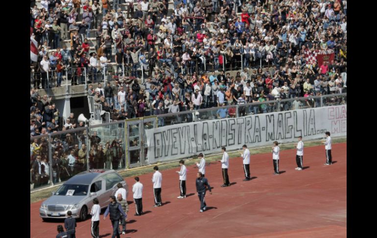 Deportes | Aficionados y jugadores del Livorno mostraron sus respetos ante el fallecido futbolista Rinden homenaje a Morosini en su estadio Los aficionados y jugadores del Livorno mostraron sus respetos ante el fallecido futbolista Piermario Morosini Por: EFE 17 de abril de 2012 - 11:06 hs El féretro con el cuerpo del jugador llegó este martes a bordo de un coche fúnebre al Estadio 'Armando Picchi'. AFP / ROMA, ITALIA (17/ABR/2012).- Los aficionados del Livorno rindieron hoy un homenaje al centrocampista italiano Piermario Morosini, quien falleció el pasado sábado a los 25 años tras desplomarse en un encuentro de la Segunda División (Serie B) entre el equipo toscano y el Pescara. El féretro con el cuerpo de Morosini llegó este martes a bordo de un coche fúnebre al Estadio "Armando Picchi" de Livorno (centro de Italia), donde dio dos vueltas a la pista de atletismo que bordea el césped entre los aplausos de la afición toscana para abrir y cerrar la breve ceremonia de homenaje. En el acto, algunos compañeros de plantilla, que llevaban una camiseta con el número 25 que lucía Morosini, depositaron sobre el féretro bufandas del equipo y el obispo de Livorno, Simone Giusti, bendijo el ataúd junto a la corona de flores enviada por el presidente de la República, Giorgio Napolitano. En las gradas, los aficionados del Livorno, club al que llegó el centrocampista el pasado enero cedido por el Udinese de Primera División, gritaron: "Estás en nuestros corazones, Moro estás en nuestros corazones" y "Eres uno de nosotros". "Lo hecho hoy por Livorno ha sido un gesto de afecto. El amor hacia este chico ha estado dictado por dos factores: el afecto que la ciudad le había demostrado enseguida y, además, honestamente por su historia, que es un exceso de ensañamiento del azar", dijo el alcalde de la ciudad, Alessandro Cosimi, en declaraciones que recogen los medios italianos. Un sector de la grada del Estadio Armando Picchi llevará a partir de ahora el nombre de Piermario Morosini, fallecido en la localidad de Pescara (centro-este) y cuyo cuerpo viajará ahora a su ciudad natal, Bérgamo (norte), donde el jueves se celebrará el funeral. Está previsto que el féretro del jugador, quien participó con la selección italiana sub'21 en el Campeonato Europeo de Suecia en 2009, llegue esta noche a Bérgamo, donde los aficionados del Atalanta le acompañarán hasta la parroquia de Monterosso, donde quedará instalada la cápilla ardiente. Morosini sufrió un repentino malestar en el minuto 31 del partido que disputaban el Pescara y el Livorno cuando se encontraba lejos del balón y cayó al césped cerca del área de su equipo, tras lo que fue trasladado de urgencia en ambulancia a un hospital cercano, donde se le intentó reanimar sin éxito. Al cuerpo del jugador se le practicó ayer la autopsia, que concluyó sin que se pudieran determinar las causas exactas de su muerte, a la espera de que se realicen nuevas pruebas, entre ellas las toxicológicas. Temas Futbol italiano Futbol Internacional Homenaje Lee También Octavio Hinojosa brilla en “Sobriedad, me estás matando” El FICM anuncia el momento perfecto de Natalia Plascencia Futbol hoy 13 de octubre de 2025: ¿Dónde ver los partidos en vivo? Así se jugarán las Semifinales del Mundial Sub-20 Recibe las últimas noticias en tu e-mail Todo lo que necesitas saber para comenzar tu día Registrarse implica aceptar los Términos y Condiciones