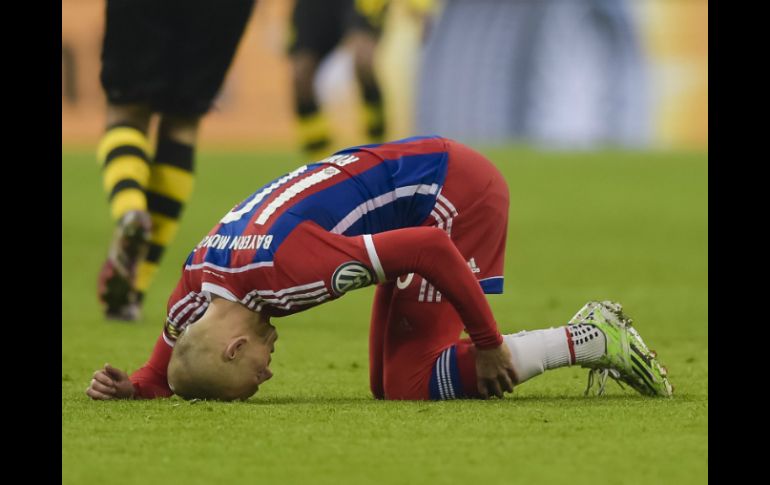 Ese fue el primer diagnostico después de que Robben, tras varias semanas de baja por un desgarro de los abdominales, estuviese sólo unos minutos sobre el campo de juego antes de volver a lesionarse.Robben entró al campo en el minuto 68 para reemplazar a Thiago Alcántara, y tuvo que volver a salir en el 84 tras lesionarse sin que ningún contrario interviniera.