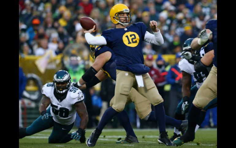 Deportes | Green Bay se impone este domingo con un marcador de 53-20 ante Filadelfia Rodgers y Empacadores humillan a Águilas Green Bay se impone este domingo con un marcador de 53-20 ante Mark Sánchez y Filadelfia Por: AP 16 de noviembre de 2014 - 18:37 hs Aaron Rodgers rompe el récord de Tom Brady de más pases seguidos como local sin una sola intercepción. AFP / R. Martínez GREEN BAY, WISCONSIN (16/NOV/2014).- Los pases de Aaron Rodgers significaron 341 yardas y tres anotaciones, para que los Empacadores de Green Bay vapulearan el domingo 53-20 a Mark Sánchez y a las Águilas de Filadelfia. Julius Peppers interceptó su segundo pase de la campaña y lo devolvió hasta la zona de anotación, y la defensiva de los Empacadores frenó a Sánchez y al ataque de alto octanaje de las Águilas. Este duelo entre dos candidatos al título en la Conferencia Nacional se tornó desigual muy pronto. Los Empacadores (7-3) se fueron al descanso con una ventaja de 30-6. Rodgers lanzó para dos anotaciones en la primera mitad, mientras que Micah Hyde anotó al atrapar un despeje y devolver 75 yardas el ovoide. Peppers liquidó a las Águilas al interceptar un envío de Sánchez y llevarse el balón 52 yardas, hasta la zona prometida, para colocar el marcador 39-6 en el tercer periodo. Filadelfia (7-3) se quedó 11 puntos por debajo de su promedio, el mejor de la Nacional, al enfrentar a una defensiva de Green Bay que luce rejuvenecida desde que Clay Matthews se mudó a la posición de linebacker interior. La ofensiva de Green Bay volvió a quedar en buenas manos. Rodgers rompió el récord de Tom Brady, de 288 pases seguidos como local sin que le interceptaran uno solo. Temas NFL Futbol Americano Águilas de Filadelfia Empacadores de Green Bay Recibe las últimas noticias en tu e-mail Todo lo que necesitas saber para comenzar tu día Registrarse implica aceptar los Términos y Condiciones
