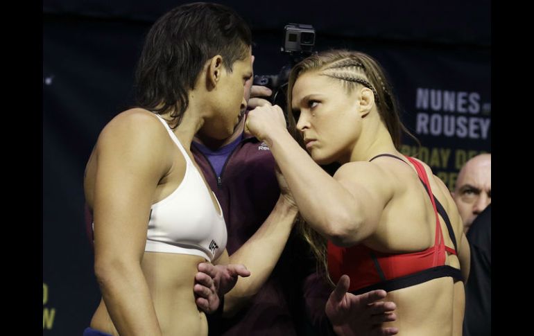 LAS VEGAS, ESTADOS UNIDOS (29/DIC/2016).- La peleadora Ronda Rousey superó la báscula y se declaró lista para enfrentar el viernes a Amanda Nunes, en el pleito estelar de UFC 207, que se realizará en la T-Mobile Arena de esta ciudad.Luego de su derrota ante Holly Holm en noviembre de 2015, Rousey (12-1) volverá al octágono para retar a la campeona de peso gallo de Ultimate Fighting Championship (UFC), "The Lioness" (13-4), quien buscará propinar su segundo revés en fila a la estadounidense.Ambas subieron este jueves a la báscula y registraron un idéntico peso de 135 libras, en condiciones de afrontar la pelea donde Rousey buscará recuperar el cetro.A diferencia de su última pelea, donde se vio a una "Rowdy" agresiva en su manera de hablar y que opinaba de diversos temas, esta vez se mantuvo alejada de los medios y de las declaraciones, por lo que solo hablará en el octágono.En el combate coestelar de la velada y entre estadounidenses, Dominick "The Dominator" Cruz (22-1) pondrá en juego el título gallo de UFC ante el retador e invicto Cody "No Love" Gargrandt (10-0).En su turno en la báscula, los dos peleadores marcaron 135 libras, listos para dar una gran pelea, dentro de una cartelera donde el mexicano-estadounidense Caín Velásquez quedó fuera rumbo a su combate con el brasileño Fabricio Werdum.La Comisión Atlética de Nevada informó el pasado 24 que Velásquez no era apto para combatir, luego que el peleador declaró que el 4 de enero tendría una cirugía, lo que derivó en una investigación, la negativa para su participación y que el duelo Rousey-Nunes sea el estelar.