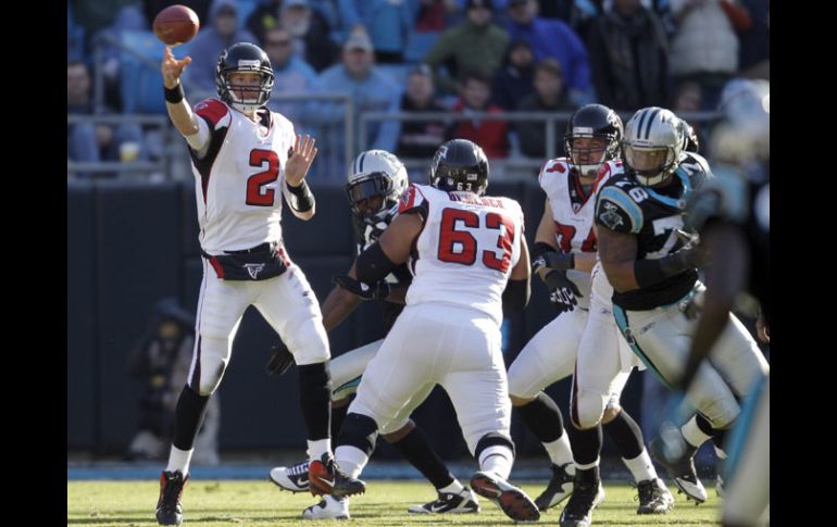 Deportes | Atlanta gana de forma cómoda a las Panteras por 31-23 Ryan lanza cuatro pases para TD Atlanta gana de forma cómoda a las Panteras por 31-23 Por: AP 11 de diciembre de 2011 - 15:15 hs Matt Ryan (2) fue el jugador más importante de los Halcones en la victoria. AP / CHARLOTTE, CAROLINA DEL NORTE (11/DIC/2011).- Matt Ryan lanzó el domingo cuatro pases para anotación al novato Julio Jones y los Halcones de Atlanta borraron una desventaja de 16 puntos para derrotar por 31-23 a las Panteras de Carolina. Ryan lanzó para ganancia de 318 yardas y empató una marca en su carrera con los cuatro envíos para touchdown. Atlanta (8-5) evitó una derrota costosa para permanecer con vida en la contienda por el boleto de comodín de la Conferencia Nacional. Fue la segunda ocasión en la temporada en que los Halcones vencen a los Panteras después de estar perdiendo en el cuarto período. Para las Panteras (4-8) fue la sexta ocasión en la campaña en que pierden después de tener ventaja o estar empatados en el último período. En octubre cayeron por 31-17 ante Atlanta a pesar de haber estado adelante en el marcador por 17-14 al inicio del último cuarto. Temas NFL Futbol Americano Halcones de Atlanta Panteras de Carolina Recibe las últimas noticias en tu e-mail Todo lo que necesitas saber para comenzar tu día Registrarse implica aceptar los Términos y Condiciones