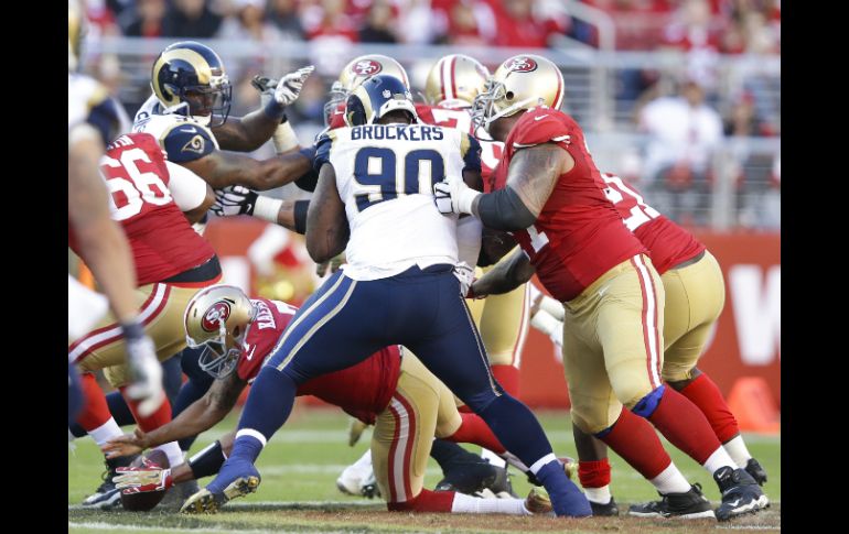 Deportes | El equipo ovino sorprende y vence 13-10 al equipo de San Francisco San Luis gana a los 49ers en la última jugada El equipo ovino sorprende y vence 13-10 al equipo de San Francisco Por: AP 2 de noviembre de 2014 - 19:00 hs Colin Kaepernick (7) de los 49ers de San Francisco se zambulle para recuperar un fumble contra los Carneros de San Luis. AFP / E. Shaw SANTA CLARA, CALIFORNIA (02/NOV/2014).- Colin Kaepernick perdió un balón en la raya de la zona de anotación cuando restaban dos segundos por jugar y San Luis derribó ocho veces al quarterback de San Francisco rumbo a la victoria el domingo por 13-10 ante los 49ers. Los 49ers (4-4) dispusieron de primera oportunidad y gol en la 1, pero no supieron capitalizar. Un gol de campo de Greg Zuerlein, de 39 yardas, puso a los Carneros (3-5) arriba con 5:25 por jugar. Pese a su pésima tarde, Kaepernick parecía encaminado a orquestar una ofensiva decisiva. San Francisco contó otra vez con el balón a 3:11 para el final, comenzando el ataque desde su yarda 12. Completó pases largos a Stevie Johnson y Anquan Boldin, aunadas a dos infracciones de Trumaine Johnson al defender ante Michael Crabtree. Desde la 1 y en tercera oportunidad, Kaepernick intentó zambullirse apenas después de recibir el balón, pero lo perdió al caer fuera de la zona de anotación. James Laurinaitis recuperó el ovoide por los Carneros. San Luis (3-5) sigue en el último lugar de su división de la Conferencia Nacional, pero ha sorprendido a los favoritos Seattle y San Francisco en las últimas tres semanas. Temas NFL Futbol Americano 49ers de San Francisco Carneros de Los Ángeles Lee También Calendario de partidos de la J13 del Apertura 2025 Hirving Lozano confía en el proceso del Tri César Huerta destaca la competencia interna en la Selección Mexicana Futbol hoy 15 de octubre de 2025: ¿Dónde ver los partidos en vivo? Recibe las últimas noticias en tu e-mail Todo lo que necesitas saber para comenzar tu día Registrarse implica aceptar los Términos y Condiciones