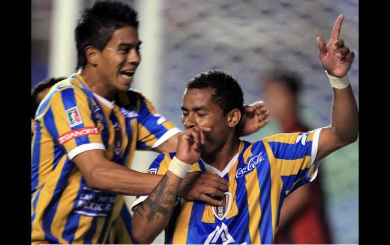 Jugadores del San Luis festejan una anotación en la última fecha del Torneo Clausura 2011.  MEXSPORT  /