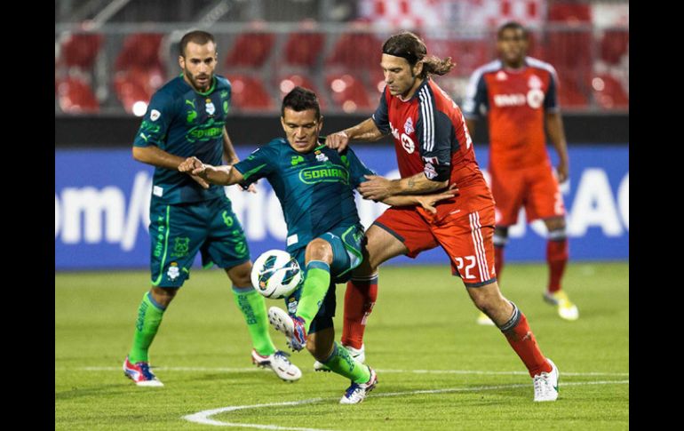 Deportes | El cuadro lagunero vence 3-1 al Toronto en la Concachampions Santos golea en Canadá El cuadro lagunero vence 3-1 al Toronto en la Concachampions Por: REUTERS 28 de agosto de 2012 - 20:54 hs Acción del partido entre Santos Laguna y Toronto que vencieron los Guerreros 3-1. MEXSPORT / TORONTO, CANADÁ (28/AGO/2012).- El club de futbol Santos Laguna, actual campeón de México, goleó el martes como visitante a Toronto de Canadá por 3-1 en la Liga de Campeones de la Concacaf. Con el triunfo, los Guerreros de Santos llegaron a seis puntos para ubicarse como los lideres del Grupo 1, donde le siguen Toronto con tres y Águila de El Salvador que aún no suma. El colombiano Carlos Darwin Quintero anotó el primer gol de Santos a los 49 minutos con un disparo cruzado tras recibir en el área un pase del español Marc Crosas. El equipo local empató a los 68 minutos cuando el estadounidense Quincy Amarykwa aprovechó un mal despeje del portero Oswaldo Sánchez y definió con un disparo en el centro del área. El triunfo para Santos llegó al final del partido. El argentino naturalizado mexicano Daniel Ludueña metió el segundo gol a los 90 minutos con un derechazo en el área tras jugada de pared con Oribe Peralta. Y un minuto después, Cándido Ramírez metió el tercero con un zurdazo cruzado tras recibir pase de Ludueña. La actividad del torneo continuará más tarde cuando Real Estelí de Nicaragua reciba a Alajuelense de Costa Rica. El miércoles se jugaran los partidos Guadalajara de México ante W Connection de Trinidad y Tobago, Municipal de Guatemala contra el mexicano Monterrey y LA Galaxy de Estados Unidos frente a Puerto Rico Islanders. El jueves, Tauro de Panamá recibirá a Herediano de Costa Rica, Caledonia AIA de Trinidad y Tobago enfrentará a Seattle Sounders de Estados Unidos y Olimpia de Honduras hará los honores al estadounidense Houston Dynamo. A los cuartos de final avanzarán los primeros lugares de cada uno de los ocho grupos y el campeón del certamen representará a la Concacaf en el Mundial de Clubes 2013 que se disputará en Marruecos del 11 al 21 de diciembre. Temas Futbol Internacional Concacaf Santos Laguna Liga de Campeones de la Concacaf Lee También Atlas aprovecha la pausa para recuperar elementos clave México listo para un nuevo desafío en el Mundial Sub-17 Femenil Hamás dice que recibió garantías de que la guerra en Gaza terminó Todas las selecciones que han calificado al Mundial 2026 hasta hoy Recibe las últimas noticias en tu e-mail Todo lo que necesitas saber para comenzar tu día Registrarse implica aceptar los Términos y Condiciones