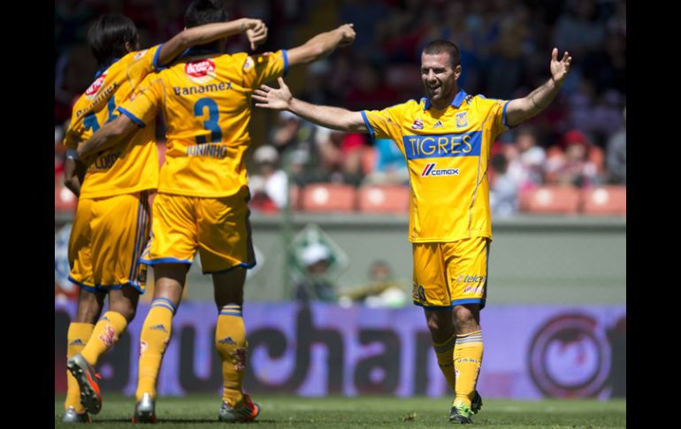 Deportes | Los Tigres de la UANL golean 4-1 al equipo de Enrique Meza Se le aparece el diablo al Toluca Los Tigres de la UANL golean 4-1 al equipo de Enrique Meza Por: NTX 10 de febrero de 2013 - 13:10 hs Tigres festeja una de las anotaciones del juego ante Toluca. MEXSPORT / TOLUCA, ESTADO DE MÉXICO (10/FEB/2013).- Aunque se cansó de fallar, Tigres de la UANL goleó 4-1 a Toluca y se confirmó como único líder, en juego de la fecha seis del Torneo Clausura 2013 de la Liga MX disputado en el estadio Nemesio Díez. En un encuentro que dominó la mayor parte, el cuadro felino se impuso con los goles del brasileño Anselmo Vendrechovski, en el minuto 34, del pampero Lucas Lobos (50) por la vía del penalti, del español Luis García y del argentino Emanuel Villa, ambos en el 90; por "Diablos rojos" descontó Edgar Dueñas, en el 78. Con este resultado, Tigres recuperó el liderato general del certamen que había perdido la víspera con América al arribar a 16 unidades, por las 15 de Águilas, en tanto que el cuadro mexiquense se quedó con cinco en la parte baja de la clasificación. Desde el inicio hubo un solo equipo en la cancha y fue Tigres, que no supo aprovechar las facilidades que le dio Toluca en zona defensiva para irse al descanso con un marcador más amplio debido a las fallas de su delantera y la buena labor de Alfredo Talavera. El ataque de "Diablos rojos" estuvo chato, pues el técnico Enrique Meza, pensando en su duelo de Copa Libertadores de la próxima semana, tuvo en la banca al panameño Luis Tejada y al paraguayo Edgar Benítez y debutó al juvenil Alexis Guillermo Ochoa, quien se perdió. El único aviso serio del cuadro anfitrión fue un disparo lejano del brasileño Lucas Silva pero el arquero visitante, Enrique Palos, se estiró a ras de pasto hacia su costado izquierdo para enviar a tiro de esquina, en el minuto siete. A partir de ahí Diablos ya no generó peligro y sí muchos errores, incluso del mismo Antonio Naelson, quien en su regreso a las canchas se mostró fuera de ritmo y perdió balones importantes en los límites de su área, uno de ellos por poco es gol. Esas fallas las aprovechó bien Tigres, que en el minuto 34 logró el 1-0 luego de que el argentino Emanuel Villa, quien había fallado una con Alfredo Talavera vencido, cedió al brasileño Anselmo "Juninho" Vendrechovski, quien sin marca y sin portero anotó. Antes de irse al descanso, Tigres desperdició dos claras de gol en jugada similar a su primer tanto, por conducto de Jorge Torres Nilo y del argentino Lucas Lobos, quienes frente a Talavera volaron su disparo de manera increíble cuando ya se cantaba el gol. Para la segunda parte el cuadro neoleonés se encontró con un penalti a favor a falta de Carlos Esquivel sobre Villa, en el minuto 50, que el pampero Lucas Lobos cobró al centro para vencer a Talavera y hacer el 2-0. Los dirigidos por Ricardo Ferretti siguieron con fallas ofensivas, una de las más claras en el segundo lapso fue la que tuvo Torres Nilo, quien quedó ante Talavera pero al sacar su disparo lo hizo en la humanidad del arquero toluqueño, al minuto 63. "Diablos rojos" fue insistente y en el minuto 78 acortó disntancias con el tanto de Edgar Dueñas, que en un tiro de esquina prolongado por el brasileño Lucas Silva remató en la línea de gol pegado al poste izquierdo de Palos para hacer el 1-2. Tigres reaccionó a la afrenta toluqueña y en el 90 logró un par de tantos más, del español Luis García a servicio por izquierda de Torres Nilo, quien hizo un gran desborde, y del "Tito" Villa, quien remató solo en el corazón del área para poner las cifras definitivas. Fue un encuentro limpio, sin faltas mal intencionadas, por lo que el silbante Fernando Guerrero llevó a buen puerto el encuentro sin mostrar ningún tipo de tarjeta. Alineaciones: Toluca.- Alfredo Talavera, Diego Novaretti, Fausto Pinto (Edgar Benítez, 46), Gerardo Rodríguez, Edgar Dueñas, Wilson Tiago, Lucas Silva, Antonio Naelson, Carlos Esquivel, Antonio Ríos (Eddy Brambila, 62) y Alexis Ochoa (Luis Tejada, 46). DT Enrique Meza. UANL.- Enrique Palos, Israel Jiménez, Anselmo Vendrechovski, Hugo Ayala, Jorge Torres, Carlos Salcido, Lucas Lobos (Luis García, 79), Francisco Torres (Jesús Dueñas, 79), Damián Álvarez (Alberto Acosta, 83), Danilo Verón y Emanuel Villa. DT Ricardo Ferretti. Temas Futbol Mexicano Diablos Rojos del Toluca Tigres Liga MX Clausura 2013 Lee También Chivas Femenil, a una victoria de asegurar su lugar en Liguilla México busca frenar el paso perfecto de Argentina en Mundial Sub-20 Dónde ver EN VIVO los juegos de MLB, HOY 10 de octubre Lista actualizada de selecciones que ya clasificaron al Mundial 2026 Recibe las últimas noticias en tu e-mail Todo lo que necesitas saber para comenzar tu día Registrarse implica aceptar los Términos y Condiciones