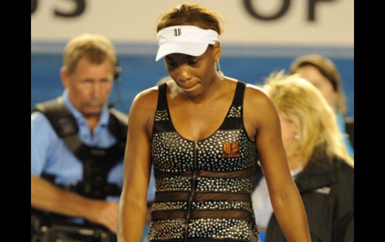 Deportes | La tenista estadounidense se retiró del Abierto de Australia por una lesión Se termina el torneo para Venus La tenista estadounidense se retiró del Abierto de Australia por una lesión en el abdomen Por: AP 21 de enero de 2011 - 11:50 hs Venus Williams tuvo que abandonar el partido que disputaba ante Petkovic. AFP / MELBOURNE, AUSTRALIA (21/ENE/2011).- Venus Williams se retiró el viernes en el segundo juego de su partido ante la alemana Andrea Petkovic en la tercera ronda del Abierto de Australia, al aparecer tras empeorar una lesión en su abdomen. Williams perdió el servicio en el primer juego y Petkovic tenía la ventaja por 30-0 cuando la estadounidense pareció lastimarse al tratar de devolver un servicio, estirándose hacia la derecha. Williams se quejó por el dolor de inmediato y comenzó a tocarse el estómago. La siete veces campeona del Grand Slam se lastimó un músculo entre el estómago y la ingle el miércoles, cuando giró para una voleada en su victoria en la segunda ronda ante la checa Sandra Zahlavova. Williams nunca se había retirado de un partido de Grand Slam por una lesión Temas Tenis Abierto de Australia Torneo WTA Venus Williams Lee También No solo Puma, estas son las colecciones de tenis para Día de Muertos 2025 (FOTOS) Calendario de partidos de la J13 del Apertura 2025 El tenis ahora es de los deportes favoritos en Guadalajara ¿Dónde ver EN VIVO el partido de J12 Xolos vs Monterrey? Recibe las últimas noticias en tu e-mail Todo lo que necesitas saber para comenzar tu día Registrarse implica aceptar los Términos y Condiciones