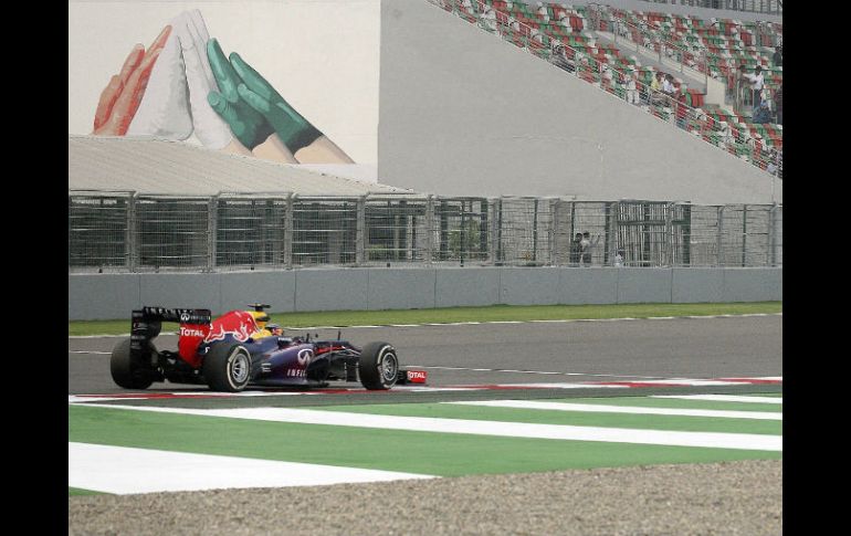 Deportes | El piloto de Red Bull consiguió el mejor tiempo en la tercera práctica libre, 1:25.332 Sebastian Vettel domina las pruebas del GP de India El piloto de Red Bull consiguió el mejor tiempo en la tercera práctica libre, 1:25.332 Por: EL INFORMADOR 26 de octubre de 2013 - 01:02 hs Sebastian Vettel sólo necesita llegar quinto en el GP de India para ganar su cuarto título mundial consecutivo. EFE / GREATER NOIDA, INDIA (26/OCT/2013).- Con un tiempo de 1:25.332, el alemán Sebastian Vettel realizó la mejor vuelta en la tercera sesión de entrenamientos libres del Gran Premio de la India, en el Circuito Internacional de Buddh. Su compañero de equipo, el australiano Mark Webber, lo escoltó con 1:25.892, delante de Fernando alonso, que paró el cronómetro en 1:26.105. Los pilotos mexicanos, Sergio Pérez y Esteban Gutiérrez, terminaron en las posiciones 13 y 19, respectivamente. Temas Automovilismo Fórmula 1 Sebastian Vettel Lee También Verstappen incrementa sus posibilidades de mantener el título Así quedó el Campeonato de Pilotos tras el Gran Premio de EU GP de Estados Unidos • Momentos Destacados • F1 2025 Atienden cerca de 28 mil percances viales con protocolo de choques lamineros Recibe las últimas noticias en tu e-mail Todo lo que necesitas saber para comenzar tu día Registrarse implica aceptar los Términos y Condiciones