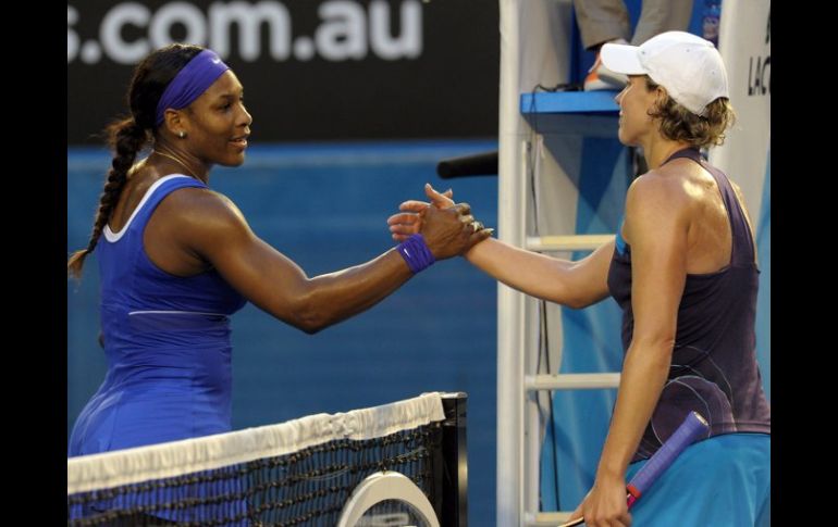 Deportes | Se coloca en la cuarta ronda luego de derrotar a la húngara Greta Arn Serena avanza sin problemas en Australia La 13 veces campeona de torneos del Gran Slam, Serena Williams, logró la victoria en sólo 59 minutos de partidos Por: REUTERS 21 de enero de 2012 - 07:40 hs Serena Williams (izq) saluda a la húngara Greta Arn, tras vencerla en el partido de tercera ronda del Abierto de Australia. EFE / MELBOURNE, AUSTRALIA (21/ENE/2012).- La tenista estadounidense Serena Williams avanzó el sábado a la cuarta ronda del Abierto de Australia luego de derrotar a la húngara Greta Arn por 6-1 y 6-1 en el Rod Laver Arena. La 13 veces campeona de torneos del Gran Slam logró la victoria en sólo 59 minutos de partidos, lo que le permite ser la única jugadora estadounidense que sigue con vida en el cuadro femenino del torneo. Williams se enfrentará a la rusa Ekaterina Makarova, número 56 del mundo, quien derrotó a su compatriota Vera Zvonareva, séptima cabeza de serie, por 7-6 y 6-1. Otras favoritas que avanzaron a octavos fueron la checa Petra Kvitova, número dos del mundo y última campeona de Wimbledon, y la rusa Maria Sharapova, cuarta preclasificada y ex número mundo del mundo. Kvitova necesitó sólo 38 minutos para vencer a la rusa Maria Kirilenko, quien se retiró lesionada cuando perdía por 6-0 y 1-0, mientras que Sharapova debió luchar 90 minutos para superar a la alemana Angelique Kerber por 6-1 y 6-2. La rusa pasa por un gran momento y ha perdido sólo cinco juegos en los tres partidos que ha disputado en el torneo. En otros resultados del día, la china Zheng Jie sorprendió al derrotar a la francesa Marion Bartoli, novena preclasificada, por 6-3 y 6-3, mientras que la serbia Ana Ivanovic se impuso a la estadounidense Vania King por 6-3 y 6-4. Temas Tenis Abierto de Australia Torneo WTA Serena Williams Lee También ¿Dónde ver EN VIVO el partido de J13 Cruz Azul vs América? ¿Dónde ver EN VIVO el partido de J13 Chivas vs Mazatlán? Djokovic iguala este récord de Federer ¿Dónde ver EN VIVO el partido de J13 Monterrey vs Pumas? Recibe las últimas noticias en tu e-mail Todo lo que necesitas saber para comenzar tu día Registrarse implica aceptar los Términos y Condiciones