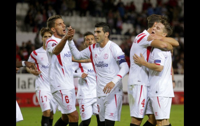 Deportes | El equipo español gana 3-1 al Standard de Lieja con gol de Carlos Bacca Sevilla gana en la Liga Europa El equipo español gana 3-1 al Standard de Lieja con gol de Carlos Bacca Por: AP 6 de noviembre de 2014 - 17:55 hs Los sevillistas logran dejar la victoria en el Estadio Ramón Sánchez Pizjuán, posicionándose en el primer lugar de la fase de grupos. EFE / P. García. SEVILLA, ESPAÑA (06/NOV/2014).- Con un tanto del colombiano Carlos Bacca, el Sevilla dio un paso hacia su clasificación a la siguiente fase de la Liga Europa, al doblegar el jueves 3-1 al Standard de Lieja. En la jornada, el Dinamo de Moscú y el Salzburgo cosecharon sendos triunfos para avanzar a la siguiente fase. Los delanteros Kevin Gameiro y José Antonio Reyes anotaron por el Sevilla en el primer tiempo, cuando llegó también un tanto del volante del Standard, Paul Jose Mpoku. Bacca aseguró el triunfo del conjunto andaluz, con un tanto en las postrimerías. Salzburgo apabulló 5-1 al Dinamo de Zagreb, con un "hat trick" de Jonathan, quien suma cinco tantos en dos partidos. El conjunto austriaco tiene ya su boleto en la mano por el Grupo D. El ex delantero de la selección alemana Kevin Kuranyi anotó por primera vez en 12 partidos para que el Dinamo de Moscú superara 1-0 al Estoril e hilara cuatro victorias consecutivas. Temas Futbol Internacional Europa League UEFA Sevilla FC Lee También Cada partido será una final para nosotros: Diego Cocca México encadena cuatro partidos sin ganar, algo que no sucedía desde 2021 ¿Dónde ver Argentina vs Colombia: semifinal del Mundial Sub-20? Calendario de partidos de la J13 del Apertura 2025 Recibe las últimas noticias en tu e-mail Todo lo que necesitas saber para comenzar tu día Registrarse implica aceptar los Términos y Condiciones