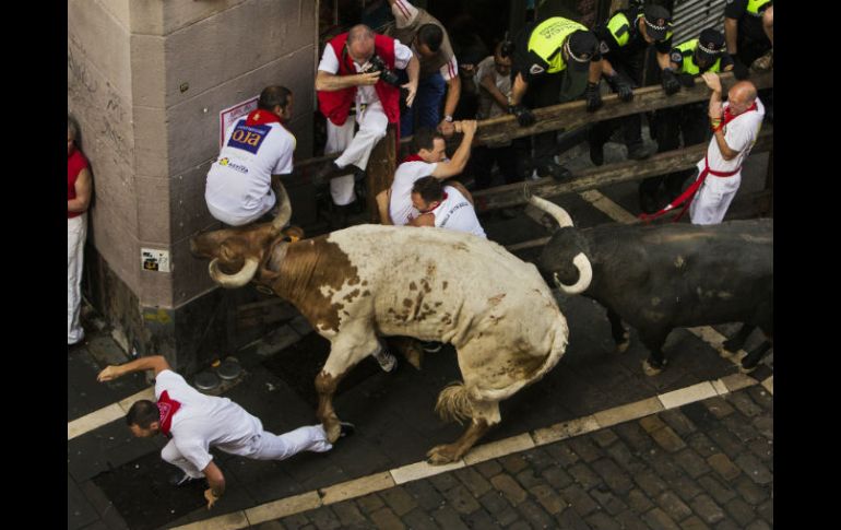 Deportes | Astados de Jandilla en el primer encierro en honor a San Fermín Siete heridos por toros en Pamplona Dos estadounidenses y un británico resultaron heridos por asta de toro y cuatro personas han sufrido lesiones de diversa consideración en el primer encierro Por: EL INFORMADOR 8 de julio de 2015 - 00:20 hs A primera hora de la mañana, reses de media tonelada salieron en estampida por las calles de Pamplona precedidos por los mozos. AP / A. Kudacki PAMPLONA, ESPAÑA (08/JUL/2015).- Un herido por asta de toro en el tórax y otras seis por contusiones fue el saldo de un primer encierro, rápido y peligroso, de la Feria de San Fermín, en Pamplona, que duró dos minutos y 23 segundos. En total, siete personas fueron trasladadas al Complejo Hospitalario de Navarra, una de ellas herida por asta de toro y el resto por contusiones. El primer encierro de la fiesta de San Fermín 2015 fue protagonizado por los toros de la ganadería de Jandilla, establecida en la finca del mismo nombre en Vejer de la Frontera, Cádiz, Sur español, y fundada en 1951. La carrera se inició, como todos los días que dura la fiesta, a las 8:00 horas locales, con varios momentos de peligro, el primero cuando un toro abrió un espacio en la cuesta de Santo Domingo, lo que se hizo mayor en la curva de Mercaderes y en la primera parte de la calle Estafeta. La loca carrera a lo largo de los 848 metros de recorrido provocó caídas y empujones entre los mozos, resultando varios de ellos heridos. Un británico, de 30 años, sufrió una cornada en el perineo, anunció la región de Navarra, de la que Pamplona es la capital. Otros dos estadounidenses también resultaron heridos por asta de toro, uno de ellos, de 38 años, sufrió una cornada en la axila derecha, y otro, de 27 años, cuyas heridas son consideradas leves por los médicos, según la región. El resto de los heridos sufren traumatismos y contusiones de distinto tipo. Esta carrera, que ha causado 15 muertos desde 1911, el último, un español de 27 años en 2009, se repetirá todas las mañanas hasta el 14 de julio. Desde ayer y hasta el 14 de julio se realizan los encierros, principal imagen de estas fiestas e inmortalizadas por el escritor estadunidense Ernest Hemingway que las dio a conocer al mundo en la primera mitad del siglo pasado, y de las que se volvió un apasionado espectador. Para el encierro de hoy participará la ganadería Del Tajo y la Reina, seguida el jueves por la de Vitoriano del Río, el día 9; Fuente Ymbro el día 10; José Escobar, el día 11; Conde de la Maza el día 12; Garcigrande el día 13, mientras Miura será la encargada de cerrar el día 14 el último encierro. Los toros que protagonizaron este primer encierro serán lidiados esta tarde por los toreros Juan José Padilla, Pepe Moral y Alberto López Simón. Las fiestas de San Fermín atraen a centenares de miles de personas a Pamplona, una ciudad de unos 300 mil habitantes. El escritor estadounidense Ernest Hemingway se encargó de hacerlas famosas en todo el mundo a principios del Siglo XX, al ponerlas de fondo en su novela “Fiesta”, publicada en 1926. Los encierros son parte tradicional de los festivales de verano en todo el país. Decenas de personas resultan heridas, sobre todo al sufrir caídas. Dos hombres murieron recientemente de cornadas en los festivales: uno el sábado en Grao de Castellón, en el Este del país, y el otro el 24 de junio en Coria, en el Suroeste. Temas Toros España Tradición Lee También "Calita" regresa a Guadalajara tras su triunfo en la Nuevo Progreso ¿Cuántos niveles debe tener un altar de muertos y qué significa cada uno? Desfile de Alebrijes Monumentales, ruta, fecha y hora del evento en CDMX Vive el otoño entre las calles de Guadalajara Recibe las últimas noticias en tu e-mail Todo lo que necesitas saber para comenzar tu día Registrarse implica aceptar los Términos y Condiciones