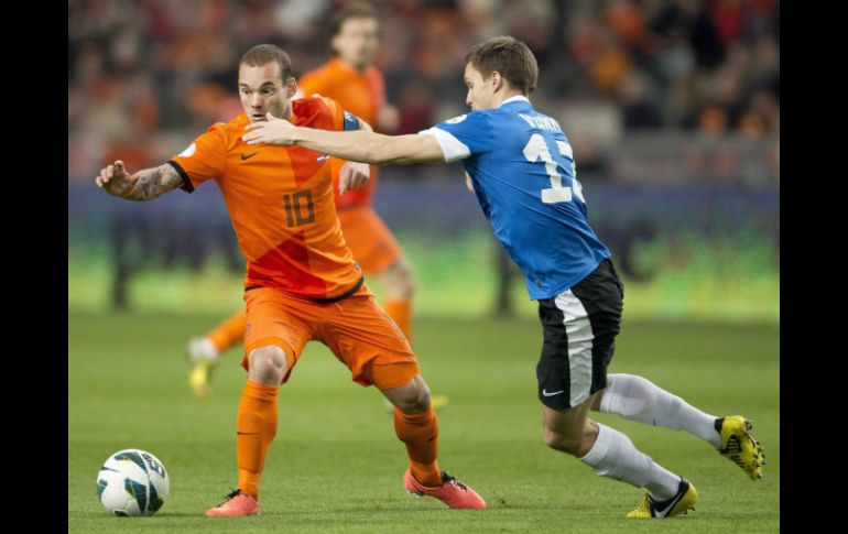 Deportes | El capitán de la selección holandesa padece de molestias en la ingle Sneijder no jugará contra Rumania por lesión El capitán de la selección holandesa padece de molestias en la ingle Por: AP 24 de marzo de 2013 - 12:45 hs Wesley Sneijder no terminó el juego ante Estonia y estará fuera en el siguiente. EFE / AMSTERDAM, HOLANDA (24/MAR/2013).- El capitán de la selección de Holanda, Wesley Sneijder, no jugará contra Rumania en la clasificación mundialista debido a una lesión en la ingle. Sneijder se lesionó el viernes durante la victoria sobre Estonia por 3-0 en Amsterdam. Fue reemplazado por el volante del Hamburgo Rafael van der Vaart, que anotó el primer gol. El técnico Louis van Gaal convocó al volante del AZ Alkmaar, Adam Maher para reemplazar a Sneijder para el partido del martes en Amsterdam. Holanda encabeza el Grupo D con cinco victorias consecutivas. Rumania está tercera tres partidos ganados, uno empatado y uno perdido. Temas Futbol Internacional Eliminatoria mundialista Selección de Holanda Recibe las últimas noticias en tu e-mail Todo lo que necesitas saber para comenzar tu día Registrarse implica aceptar los Términos y Condiciones