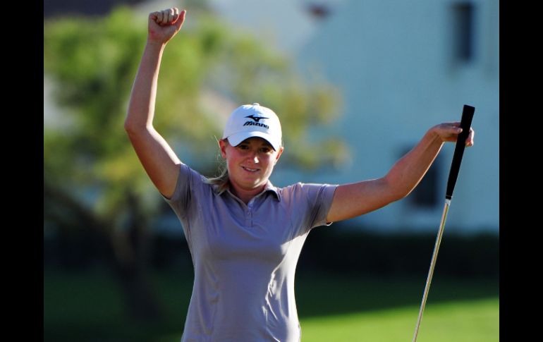 Deportes | La estadounidense arrebata el título a la tailandesa en la última ronda Stacy Lewis se lleva el Kraft Nabisco Championship La estadounidense arrebata el título a la tailandesa en la última ronda Por: SUN 3 de abril de 2011 - 20:15 hs Stacy Lewis celebra luego de ganar el Kraft Nabisco Championship. AFP / RANCHO MIRAGE, CALIFORNIA (03/ABR/2011).- La estadounidense Stacy Lewis superó en la última ronda a la tailandesa Yani Tseng para arrebatarle el Kraft Nabisco Championship. Con un golf más consistente y de gran concentración, Lewis se llevó su primer título de la gira, el cual representa también su primer Major. La vencedora tiró tres abajo de par, para firmar una ronda de 69, y terminar un total de 13 golpes. Consiguió una pronta ventaja de dos strokes sobre la número uno del ranking mundial femenil para, después, mantenerla a raya el resto de la ronda final. Tseng tiró una tarjeta de 74 golpes, con cuatro bogeys, perdiendo la concentración en la búsqueda de revalidar su título. Aunque Lewis se apuntó un bogey en el hoyo 15, para dejar a la tailandesa a un tiro, Yani embocó dos bogeys para los siguientes dos greenes. “No lo puedo creer”, comentó Lewis, quien con este triunfo entra a la élite del tenis femenil. “Sentí que iba a estar en el campo todo el día. Es increíble. Intenté mantener la calma”, agregó. La joven texana de 26 años tras embocar su último putt, levantó las manos en un festejo silencioso. Jugadoras y amistades la bañaron con bebidas hasta mojarla por completo. Ya con la familia agarrados de la mano, realizaron el tradicional salto Poppie’s Pond en el estanque ubicado a un costado del green del hoyo 18. En tercer lugar del primer Major del año terminaron empatadas las estadounidenses Angela Standford, Morgan Pressel y Katie Futcher, a nueve golpes de distancia de Tseng. Michelle Wie finalizó sexta. Sheridan alcanza top 15 La golfista tapatía Sophia Sheridan consiguió ubicarse empatada en la décimo cuarta posición, con un total de un golpe bajo par, en el Daytona Beach Invitational del LPGA Futures Tour. Sheridan tuvo su mejor ronda este domingo cuando firmó una tarjeta de 70 golpes tras embocar un eagle, tres birdies y tres bogeys. Es el segundo top 15 que alcanza la mexicana en dos fechas disputadas en el certamen que otorga tarjetas a la LPGA. La también mexicana Marcela León concluyó empatada en el lugar 75, al finalizar con un score de 12 golpes arriba de par. La japonesa Haru Nomura se llevó el certamen al terminar con un total de nueve golpes bajo par. Temas Golf LPGA Lee También Sociales: Torneo de golf “Por más sonrisas” Lanzan vaso con bebida al golfista Rory McIlroy y su esposa (VIDEO) Presentan el Gaby López Open 2025 Tiger Woods dirigirá el comité de la PGA; buscan reorganizar el golf Recibe las últimas noticias en tu e-mail Todo lo que necesitas saber para comenzar tu día Registrarse implica aceptar los Términos y Condiciones