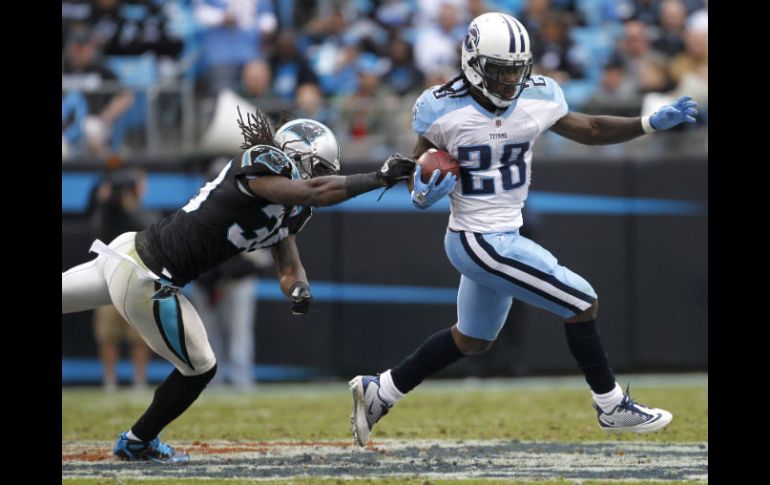 Deportes | Johnson corre 130 yardas y anota un touchdown Tennessee presiona con su defensa a Carolina Johnson corre 130 yardas y anota un touchdown Por: AP 13 de noviembre de 2011 - 15:41 hs Por primera vez desde el 2 de octubre, Johnson (D)corrió más de 100 yardas. AP / CHARLOTTE, CAROLINA DEL NORTE (13/NOV/2011).- Chris Johnson corrió el domingo para su mejor cifra de la temporada con 130 yardas y un touchdown y los Titanes de Tennessee asfixiaron en defensa al novato quarterback Cam Newton para aplastar 30-3 a las Panteras de Carolina. Los Titanes (5-4) capturaron a Newton cinco veces y eliminaron el juego de pases verticales de Carolina. Las Panteras (2-7) llegaban en el quinto puesto de la liga en ofensiva y primeros en jugadas de 20 yardas o más. Pero los Titanes frenaron a Newton en 209 yardas en pases y a Steve Smith, el mejor receptor de la Conferencia Nacional, en 33 yardas. Johnson logró 174 yardas desde la línea de formación y por primera vez desde el 2 de octubre corrió más de 100 yardas. Marc Mariani devolvió una patada de despeje 79 yardas para un touchdown y Matt Hasselbeck lanzó un pase de anotación de 43 yardas a Damian Williams, que terminó con 107 yardas en recepciones. Temas NFL Futbol Americano Titanes de Tennessee Panteras de Carolina Recibe las últimas noticias en tu e-mail Todo lo que necesitas saber para comenzar tu día Registrarse implica aceptar los Términos y Condiciones
