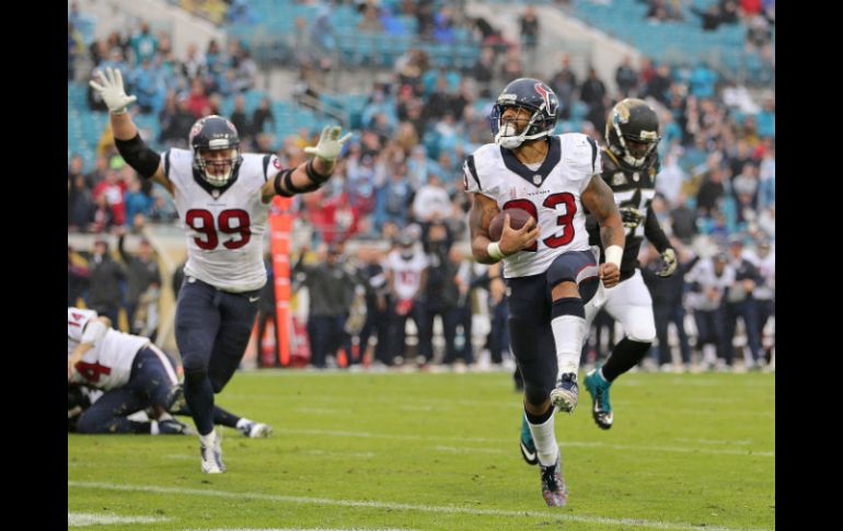 Deportes | Houston derrota a domicilio a Jacksonville, con un marcador de 23-13 Texanos siguen en pelea con triunfo ante Jaguares Houston derrota a domicilio a Jacksonville, con un marcador de 23-13 Por: AP 7 de diciembre de 2014 - 15:15 hs Arian Foster (23) de los Texanos de Houston marca un touchdown durante la segunda mitad del partido contra los Jaguares de Florida. AFP / R. Foldy JACKSONVILLE, FLORIDA (07/DIC/2014).- Arian Foster corrió para 127 yardas y un touchdown, y los Texanos de Houston vencieron el domingo 27-13 a los Jaguares de Jacksonville. Los Texanos ganaron partidos de manera consecutiva por primera vez desde la segunda jornada y mantuvieron vivas sus posibilidades en una cerrada contienda por el puesto de comodín de la Conferencia Americana. El acarreo de Foster de una yarda en la segunda jugada del último cuarto dio a Houston (7-6) una cómoda ventaja en el que había sido un duelo de ida y venida. Luego que el mariscal de campo Ryan Fitzpatrick se metió en problemas en tercera jugada, los Texanos adoptaron una formación de gol de campo antes de solicitar un tiempo fuera y decir jugársela. Foster inició la jugada por la derecha y parecía que sería detenido en pérdida de yardas, pero eludió el tacleo, viró al lado contrario y cruzó la zona de anotación. Los Jaguares (2-11) tuvieron una ventaja de 13-10 al medio tiempo, pero en la segunda mitad poco pudieron hacer. Temas NFL Futbol Americano Texanos de Houston Jaguares de Jacksonville Lee También Futbol hoy 12 de octubre de 2025: ¿Dónde ver los partidos en vivo? Nos quedamos con sensaciones cortas: Eduardo Arce Hay jugadores que no estuvieron a la altura: Javier Aguirre César Montes intenta justificar la goleada ante Colombia Recibe las últimas noticias en tu e-mail Todo lo que necesitas saber para comenzar tu día Registrarse implica aceptar los Términos y Condiciones