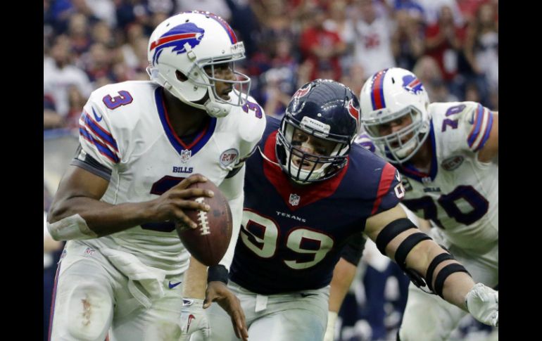 Deportes | Houston se sobrepone a su mala actuación ofensiva y superan 23-17 a Buffalo Texanos vencen a Bills Houston se sobrepone a su mala actuación ofensiva y superan 23-17 a Buffalo Por: AP 28 de septiembre de 2014 - 15:57 hs Watt intercepta un pase y devuelve el ovoide 80 yardas para la anotación de su equipo. AP / D. Phillip HOUSTON, TEXAS (28/SEP/2014).- Watt realizó otra jugada clave para que los Texanos de Houston se sobrepusieran a una mala actuación de su ofensiva y superaran el domingo 23-17 a los Bills de Buffalo. Houston (3-1) estaba abajo por tres puntos en el tercer periodo y Ryan Fitzpatrick había sufrido recién su segundo pase interceptado, cuando Watt hizo la gran jugada. El defensive end de 1.95 metros (seis pies y cinco pulgadas), quien pesa 131 kilogramos (289 libras) interceptó un pase y devolvió el ovoide 80 yardas para que los Texanos se colocaran arriba por 14-10. En la semana 2, Watt atrapó un envío de anotación. En lo que va de la campaña, suma más touchdowns que Arian Foster y Andre Johnson en forma combinada. Sometido a una intensa presión toda la tarde, EJ Manuel finalizó con 225 yardas por aire, dos touchdowns y dos interceptados por los Bills (2-2). Buffalo intentaba reaccionar en las postrimerías del partido cuando Darryl Morris aprovechó un balón regalado por Manuel en la yarda 15 de Houston, lo que sentenció el resultado. Temas NFL Futbol Americano Bills de Buffalo Texanos de Houston Lee También "Chucky" Lozano reconoce que jugaría en Chivas o en América Dónde ver EN VIVO el México vs Argentina por el Mundial Sub-20 ¿Dónde ver EN VIVO el partido amistoso México vs Colombia? México vs. Argentina: Hora de alzar el pecho Recibe las últimas noticias en tu e-mail Todo lo que necesitas saber para comenzar tu día Registrarse implica aceptar los Términos y Condiciones