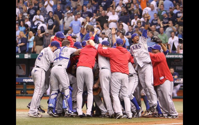 Deportes | Vence en el quinto y definitivo juego a las Mantarrayas por 5-1 Texas va a la Serie de Campeonato Los Rangers superan en el quinto y definitivo juego de la Serie Divisional a Tampa Bay, 5-1, con gran actuación del lanzador Cliff Lee Por: AP 13 de octubre de 2010 - 04:37 hs Los Rangers de Texas ganaron por primera vez en la historia de la franquicia una serie de postemporada. AFP / SAINT PETERSBURG (13/OCT/2010).- Cliff Lee volvió a ofrecer una joya de pitcheo en la postemporada y los Rangers de Texas ganaron por primera vez en la historia de la franquicia una serie de postemporada, al vencer el martes 5-1 a los Rays de Tampa Bay, en el juego decisivo de la Serie Divisional de la Liga Americana. Además de la actuación de Lee, quien lanzó toda la ruta, fue crucial para los Rangers la forma agresiva en que sus corredores avanzaron en las bases. Lee ponchó a 11 enemigos en una faena de seis imparables y una carrera permitida, para su segundo triunfo sobre el as de los Rays, David Price, en una serie en la que todos los triunfos fue en calidad de visitantes (la primera vez que ello ocurre en la historia de las Grandes Ligas). Los Rangers serán anfitriones de los Yankees de Nueva York, que avanzaron de comodínes, en el primer juego de la Serie de Campeonato de la Liga Americana, el viernes por la noche. Serie de Campeonato Liga Nacional Juego 1 San Francisco en Filadelfia Sábado 16 de octubre 18:30 horas Juego 2 San Francisco en Filadelfia Domingo 17 de octubre 19:00 horas Juego 3 Filadelfia en San Francisco Martes 19 de octubre 15:00 horas Juego 4 Filadelfia en San Francisco Miércoles 20 de octubre 18:30 horas *Juego 5 Filadelfia en San Francisco Jueves 21 de octubre 18:30 horas *Juego 6 San Francisco en Filadelfia Sábado 23 de octubre 14:30 horas *Juego 7 San Francisco en Filadelfia Domingo 24 de octubre 18:30 horas Serie de Campeonato Liga Americana Juego 1 Yankees en Texas Viernes 15 de octubre 19:00 horas Juego 2 Yankees en Texas Sábado 16 de octubre 15:00 horas Juego 3 Texas en Yankees Lunes 18 de octubre 19:00 horas Juego 4 Texas en Yankees Martes 19 de octubre 19:00 horas *Juego 5 Texas en Yankees Miércoles 20 de octubre 15:00 horas *Juego 6 Yankees en Texas Viernes 22 de octubre 19:00 horas *Juego 7 Yankees en Texas Sábado 23 de octubre *De ser necesario. Temas Beisbol MLB Rangers de Texas Lee También Dónde ver EN VIVO los juegos de MLB, HOY 9 de octubre Resultados de las Series Divisionales: Azulejos elimina a los Yankees Resultados de las Series Divisionales: Yankees sigue con vida, Marineros está a uno de la final Alemao Hernández quiere repetir bicampeonato, ahora con Charros Recibe las últimas noticias en tu e-mail Todo lo que necesitas saber para comenzar tu día Registrarse implica aceptar los Términos y Condiciones