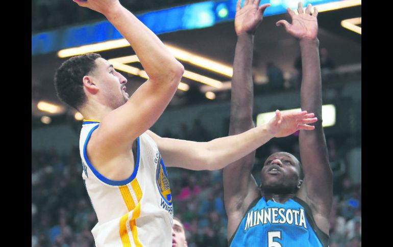 ESTADOS UNIDOS (12/DIC/2016).- Klay Thompson contribuyó con 30 puntos para que los Warriors de Golden State evitaran lo que hubiera sido su primera racha de dos derrotas consecutivas en temporada regular desde 2015, al imponerse ayer 116-108 a los Timberwolves de Minnesota.Stephen Curry agregó 22 unidades y nueve asistencias por los Warriors, que ampliaron a 111 su racha de encuentros de la campaña regular sin sufrir dos tropiezos seguidos, un récord de la NBA.Golden State perdía por 10 puntos en el comienzo del cuarto periodo, pero lo inauguró con una avalancha de 25 unidades contra cuatro para revertir la situación.Karl Anthony Towns sumó 25 tantos y 18 rebotes, mientras que Andrew Wiggins anotó 25 puntos por los Timberwolves (16-8).