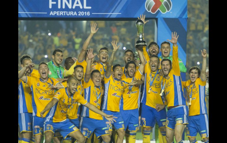 MONTERREY, NUEVO LEÓN (25/DIC/2016).- En un encuentro en el que hubo emociones, intensidad y hasta bronca, Tigres de la UANL doblegaron 3-0 en penales al América (tras empatar 2-2 en el global) en el estadio Universitario y con ello se proclamaron campeones del Torneo Apertura 2016 y lograron el quinto título en su historia. Los goles del encuentro fueron conseguidos por Edson Álvarez a los 95 minutos, por América, y de Jesús Dueñas a los 119. Después todo se definió en la tanda de penales. El encuentro inició con buen ritmo, con pocas llegadas de ambos equipos a las porterías rivales, pero con una lucha intensa en el medio campo por adueñarse del esférico. Las Águilas estuvieron bien ubicadas en el terreno de juego y buscaron abrir el marcador cuando Rubens Sambueza llegó por el lado izquierdo, mandó centro que trató de rematar en el área Oribe Peralta de chilena, pero no conectó la pelota y todo quedó en el intento. Los de la UANL trataron de responder con llegadas por los costados y centros, pero el rival estuvo para resolver sin mayores problemas los intentos de los pupilos del técnico Ricardo "Tuca" Ferretti. A los 32 minutos Javier Aquino puso en serios aprietos a las Águilas, luego que tomó la pelota en los linderos del área y tiró de media distancia, pero Moisés Muñoz tuvo una oportuna intervención para salvar su cabaña. Los anfitriones mostraron intensidad y siguieron en la búsqueda de hacer daño al América, pero eso simplemente no llegó y acabaron por irse al descanso sin anotaciones. En la parte complementaria, la historia se mantuvo de manera similar, un cotejo con intensidad, intento de ambos equipos por abrir el marcador, pero pocas llegadas. Sin embargo, fue a los 55 minutos cuando Oribe Peralta tuvo una falla garrafal, ya que recibió la pelota en el área y prácticamente era empujarla a las redes, pero la mandó por un lado. De manera inmediata, los Tigres respondieron cuando Damián Álvarez centró por el lado izquierdo y Jürgen Damm llegó para rematar de cabeza, pero el balón también se fue por un lado. Los de Coapa insistieron en ponerse en ventaja en la pizarra, pero no concretaron las opciones que se les presentaron, por lo que todo se mantenía igual hasta los 65 minutos. Tigres estuvo cerca de ponerse al frente con un tiro libre cobrado por Juninho que desvió Muñoz y del otro lado la pelota llegó a Iván Estrada, quien envió centro y en el rebote el balón quedó en Jesús Dueñas, quien conectó con la cabeza, pero la pelota pegó en el travesaño y así se salvó el contrincante. A los 81 minutos, André-Pierre Gignac sacó un tiro desde fuera del área, pero pegó en el travesaño y una vez más América se salvó de estar en desventaja en el marcador y a final de cuentas llegaron los tiempos extra. En estos últimos, América se puso en ventaja, luego que a los 95 minutos Edson Álvarez remató de cabeza en un tiro de esquina por izquierda para mandar la pelota a las redes y así cayó el 1-0 en el marcador. Los Tigres intentaron reaccionar, el cotejo subió de tono, los ánimos se caldearon y llegaron a una bronca, en la que intervinieron las bancas y fueron expulsados José Rivas, de Tigres, y Paolo Goltz, de América. En el segundo tiempo extra, los felinos se lanzaron al frente en busca de la igualada en el marcador y lo consiguieron a los 119 minutos, Dueñas apareció para rematar de cabeza un centro por derecha de Damm y con ello obligó a la definición en penales. Ahí, figuró el guardameta de Tigres, Nahuel Guzmán, quien detuvo tres tiros y los jugadores André-Pierre Gignac, Juninho y Guido Pizarro marcaron para darle el campeonato a los felinos, que de paso permitieron festejar con ello al técnico Ricardo "Tuca" Ferretti, luego que dirigió su partido número mil en el futbol mexicano. El árbitro del encuentro fue Jorge Isaac Rojas, quien amonestó a Guido Pizarro, por Tigres, y a Bruno Valdez, Rubens Sambueza, Silvio Romero, Miguel Samudio, Pablo Aguilar y Michael Arroyo, por América. Expulsó a Jorge Torres Nilo y José Rivas, por los felinos, y a Rubens Sambueza, Ventura Alvarado y Paolo Goltz, por las Águilas. Alineaciones: Tigres.- Nahuel Guzmán; Jorge Torres Nilo, Juninho, Hugo Ayala, Iván Estrada (Alberto Acosta, 92´); Guido Pizarro, Jesús Dueñas, Jürgen Damm, Javier Aquino (Damián Álvarez, 54´); Ismael Sosa (José Rivas, 91´) y André-Pierre Gignac. DT: Ricardo Ferretti. América.- Moisés Muñoz; Paolo Goltz, Miguel Samudio, Pablo Aguilar, Bruno Valdez; José Guerrero (Edson Álvarez, 84´), Alex Renato Ibarra, William Da Silva, Rubens Sambueza; Michael Arroyo (Javier Güémez, 108´) y Oribe Peralta (Silvio Romero, 78´). DT: Ricardo La Volpe.