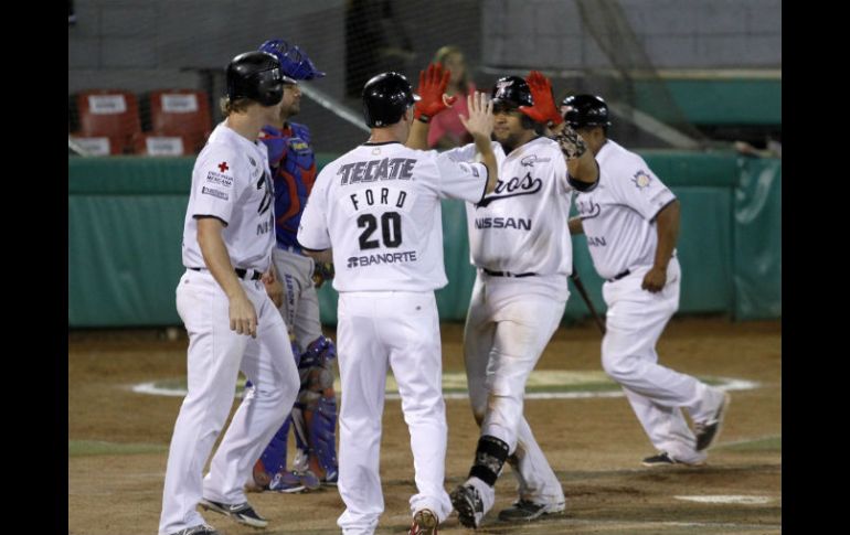 Deportes | Ganan por 14-5 y se acercan 2-1 en la Serie de Campeonato 2015 Tijuana apalea a Monclova en final Zona Norte Ganan por 14-5 y se acercan 2-1 en la Serie de Campeonato 2015 Por: NTX 2 de septiembre de 2015 - 10:36 hs Este miércoles se realizará el cuarto partido de esta final. NTX / E. Jaramillo TIJUANA, BAJA CALIFORNIA (02/SEP/2015).- Toros de Tijuana despertó con una ofensiva de 16 imparables, para vencer 14-5 a Acereros de Monclova, y acercarse 2-1 en la Serie de Campeonato 2015 de la Zona Norte. Ante un repleto Estadio Gasmart, el cuadro fronterizo tuvo en el dominicano Miguel Olivo (4) a uno de sus mejores hombres a la ofensiva, tras pegar tres imparables, uno de ellos cuadrangular de tres carreras claves en esta victoria. El estadounidense Barry Enright (4-0) se apuntó la victoria para Toros, mientras que el dominicano Juan Antonio Peña (1-2) cargó con la derrota. Además de Miguel Olivo, Abel Martínez (1) también conectó un panorámico cuadrangular en la quinta entrada, en favor de Toros. Por Monclova, el dominicano Olmo Rosario (1) conectó un "grand slam", que ayudó al conjunto del acero a quitarse la blanqueada en el octavo tramo. Este miércoles se realizará el cuarto partido de esta final de la Zona Norte, que es a ganar cuatro de siete posibles duelos. El dominicano Logan Durán saldría a la loma por Toros de Tijuana, ante el estadounidense Anthony Capra, de Acereros. Equipos 1 2 3 4 5 6 7 8 9 C H E Monclova 0 0 0 0 5 0 0 0 0 5 7 1 Tijuana 0 1 3 4 1 0 5 0 X 14 16 0 PG:Barry Enright (4-0). PD: Juan Antonio Peña (1-2). Sv: No hubo. Jrs: MVA: Olmo Rosario (1). TIJ: Miguel Olivo (4), Abel Martínez (1). Temas Beisbol Liga Mexicana de Beisbol LMB Lee También México vs Colombia • Momentos destacados • Partido amistoso México cae ante Argentina y termina el sueño mundialista en Chile México vs Argentina • Momentos Destacados • Cuartos de Final • Mundial Sub-20 Dónde ver EN VIVO los juegos de MLB, HOY 11 de octubre Recibe las últimas noticias en tu e-mail Todo lo que necesitas saber para comenzar tu día Registrarse implica aceptar los Términos y Condiciones