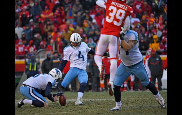 KANSAS CITY, MISSOURI (18/DIC/2016).- Ryan Succop convirtió un gol de campo de 53 yardas contra el viento y en el último segundo del partido, para que los Titanes de Tennessee dieran la sorpresa el domingo, al derrotar 19-17 a los Jefes de Kansas City, durante una gélida tarde en el Arrowhead Stadium.Succop, quien jugó la primera parte de su carrera con Kansas City se quedó corto en su primer intento por convertir el gol de campo que significara el triunfo. Pero el entrenador de los Jefes, Andy Reid, había solicitado una pausa antes de que se centrara el balón.Con su segunda oportunidad, Succop no perdonó, y los Titanes entraron corriendo desde el banquillo para celebrar.Los Titanes remontaron una desventaja de 17-7. El segundo touchdown de Derrick Henry acercó a Tennessee (8-6) a 17-16, con poco más de tres minutos por jugar.Sin embargo, el entrenador de los Titanes, Mike Mularkey fue por la conversión de dos puntos que le diera la ventaja. Marcus Mariota fue presionado de inmediato, y su pase nunca llegó a la zona de anotación.Pero los Jefes (10-4), que trataban de amarrar el boleto a la postemporada, no pudieron conseguir suficientes primeros y 10 para agotarse el tiempo.Tennessee recibió el balón con un minuto restante y sin pausas. Con serenidad, Mariota encontró a Rishard Matthews para 19 yardas y completó dos veces con Delanie Walker, lo que preparó la escena para el gol de campo de Succop.