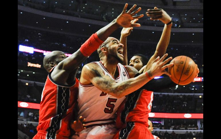 Deportes | El equipo líder de la Divsión Central gana a Nets 90-81 Toros de Chicago cierra el año ganando El equipo líder de la Divsión Central gana a Nets 90-81 Por: AP 31 de diciembre de 2010 - 16:43 hs El jugador de los Toros, Carlos Boozer, logra lanzar entre Johan Petro (i) y Derrick Favors, de Nets. EFE / CHICAGO, ESTADOS UNIDOS (31/DIC/2010).- Carlos Boozer anotó 20 puntos y atrapó 15 rebotes, para que los Bulls de Chicago lograran el viernes su duodécimo triunfo en 14 partidos, esta vez por 90-81 sobre los Nets de Nueva Jersey. Luol Deng y Derrick Rose anotaron 19 puntos cada uno y los Bulls acertaron suficientes disparos en las postrimerías del encuentro después de tener problemas de puntería durante buena parte del duelo. Brook López encabezó a Nueva Jersey con 19 puntos. Travis Outlaw y Stephen Graham anotaron cada uno 16 unidades, pero los Nets sufrieron su cuarta derrota seguida. Al menos, esta vez no fueron aplastados. Vencidos por 51 puntos en forma combinada durante los últimos tres partidos, los Nets dieron pelea a los líderes de la División Central. Temas NBA Basquetbol Nets de Brooklyn Toros de Chicago Recibe las últimas noticias en tu e-mail Todo lo que necesitas saber para comenzar tu día Registrarse implica aceptar los Términos y Condiciones