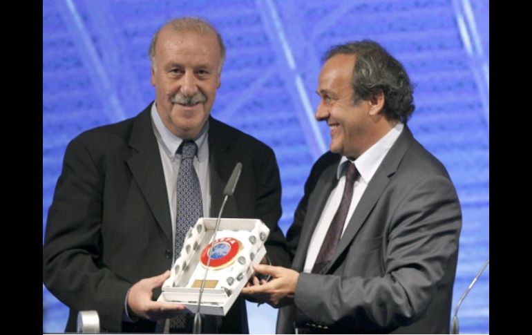 Deportes | Felicitó a Vicente del Bosque por su título mundial UEFA defiende a sus equipos El presidente de la UEFA Michel Platini aseguró que su ognanismo tiene como prioridad ver por sus conjuntos nacionales Por: EFE 20 de septiembre de 2010 - 10:36 hs El presidente de la UEFA, el francés Michel Platini (der.), entrega un presente a, Vicente del Bosque. EFE / MADRID, ESPAÑA (20/SEP/2010).- El presidente de la UEFA, Michel Platini, aseguró hoy que la "prioridad" de este organismo "es defender a los equipos nacionales", durante la apertura de la novena reunión de seleccionadores europeos en Madrid, donde felicitó al técnico español Vicente del Bosque por el título mundial. "La prioridad de la UEFA es defender a los equipos nacionales y vamos a intentar aportar experiencia por el bien del futbol", comentó Platini en el discurso de bienvenida a los técnicos de las 53 federaciones europeas, en el que aseguró sentirse feliz en Madrid entre todos sus "viejos amigos". El presidente de la UEFA tuvo palabras de reconocimiento para el trabajo de todos ellos. "Estáis siempre confrontados a millones de personas que piensan cómo lo harían en vuestra situación. Constituís el honor y el orgullo nacional", dijo. Tras las intervenciones del presidente de la Federación Española, Ángel María Villar, y del secretario de Estado para el Deporte, Jaime Lissavetzky, se inició la primera sesión de la reunión con un repaso a la participación europea en Sudáfrica 2010 y un reconocimiento para España, campeona del mundo y de Europa. Bert Van Marwijk, subcampeón del mundo con Holanda, Joachim Low, bronce con Alemania en Sudáfrica 2010, y Marcello Lippi, ex seleccionador italiano, participarán en la jornada matinal de mañana. Por la tarde intervendrán, entre otros, el italiano Fabio Capello, actual responsable de la selección inglesa, y Ottmar Hitzfield, técnico de Suiza. Temas Futbol Internacional UEFA Michel Platiní Lee También Futbol hoy 10 de octubre de 2025: ¿Dónde ver los partidos en vivo? México listo para un nuevo desafío en el Mundial Sub-17 Femenil Hamás dice que recibió garantías de que la guerra en Gaza terminó Todas las selecciones que han calificado al Mundial 2026 hasta hoy Recibe las últimas noticias en tu e-mail Todo lo que necesitas saber para comenzar tu día Registrarse implica aceptar los Términos y Condiciones