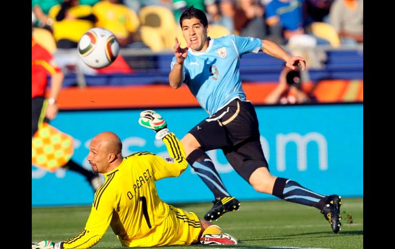 Deportes | Gol del uruguayo Suárez en el minuto 42 Uruguay supera 1-0 a México; Sudáfrica mantiene ventaja de 2-1 ante Francia Con estos marcadores parciales, los charrúas y los tricoles calificarían como primero y segundo lugar, respectivamente, del Grupo A Por: REUTERS 22 de junio de 2010 - 08:53 hs Acción del gol a favor de Uruguay por Luis Suárez. EFE / RUSTENBURG, SUDÁFRICA (22/JUNIO/2010).- No sólo en el marcador sino también en el trámite de los primeros 45 minutos, la Selección de Uruguay supera claramente a su similar de México, en el Estadio Royal Bofokeng de Rustemburgo. El partido inició con los embates charrúas sobre la portería custodiada por el "Conejo" Pérez, quien durante los primeros 15 minutos vio cómo el astro celeste, Diego Forlán, orquestó la media cancha y sirvió de balones a los delanteros, Suárez y Cavani. El Tri estuvo desconcertado los minutos iniciales y se pudo zafar la presión hasta el minuto 21 cuando Andrés Guardado estrelló su disparo en el travesaño. A partir de entonces se equilibraron las acciones y México poco a poco fue metiendo a Uruguay en su terreno, pero sin generar mayor peligro al frente. La posesión del balón por parte de los mexicanos fue engañosa, pues lejos de genera peligro dejaron la mesa servida para que los uruguayos los contragolpearan y de esa forma llegó el gol que tiene en ventaja a los dirigidos por Óscar Tavárez, cuando por la derecha Edinson Cavani mandó un centro que el "Maza" Rodríguez no saltó a despejar, para que cerrando la pinza anotara de cabeza Luis Suárez. Merecido el triunfo parcial de los uruguayos, pues han llegado más veces que México y en el trámite del primer tiempo han dominado las acciones. Mientras tanto, Francia ya pierde ante el anfitrión, nada más y nada menos que con un marcador de 2-1. Si Sudáfrica se inspira y le mete más goles a Francia, cualquier perdedor entre México y Uruguay podría quedar incluso fuera de octavos de final. Sudáfrica se puso en ventaja 1-0 con un remate de cabeza de Bongani Khumalo a los 20 minutos y Francia se quedó con 10 jugadores en el campo por la expulsión de Yoann Gourcuff. El segundo tanto lo anotó Katlego Mphela al 36. El descuento francés cayó por la vía de Malouda al minuto 69. EL INFORMADOR / ERNESTO LÓPEZ MOTA / ENVIADO - CON INFORMACIÓN DE EL UNIVERSAL Temas Selección mexicana Mundial de Sudáfrica 2010 Selección de Uruguay Lee También México vs Ecuador: ¿Quién ganará el partido según la IA? ¿Por qué el precio de la carne en México subió tanto? Cabo Verde clasifica y estará en una Copa del Mundo por primera vez en su historia Así ven en el Barcelona y Real Madrid el posible fichaje de Gilberto Mora Recibe las últimas noticias en tu e-mail Todo lo que necesitas saber para comenzar tu día Registrarse implica aceptar los Términos y Condiciones